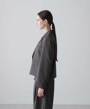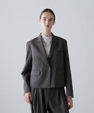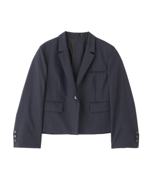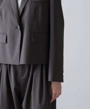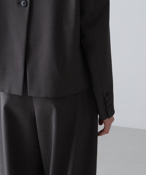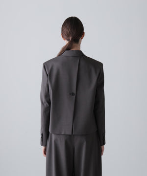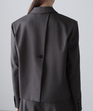 やや着丈の短いボクシーなシルエットのジャケットでバック部分がボタンで開閉します。