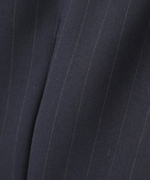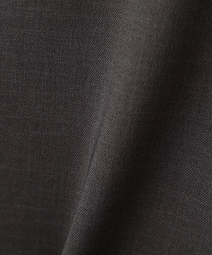 グレーはポリエステル強撚糸を使用し、ドライでふくらみのあるタッチを持たせた伸縮性のある素材、ネイビーストライプはポリエステル・ウールの混紡糸を使用し、スッキリとドライなタッチに仕上げた、しなやかな平織素材で仕立てました。