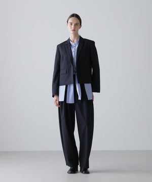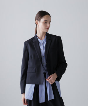 スッキリとしたメンズライクな素材を使用したジャケットです。