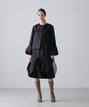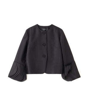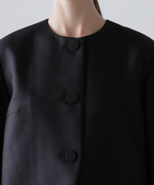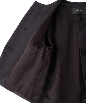 上質なシルクウール素材を使用したノーカラージャケットです。