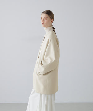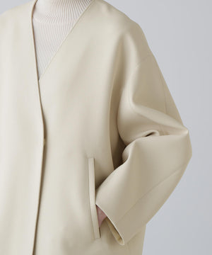 フォルムを強調したミニマルなディテールのボンディングノーカラージャケット