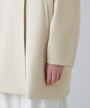 ディテールをそぎ落とし素材のハリ感とシルエットのフォルム感を生かしたハーフコートになります。