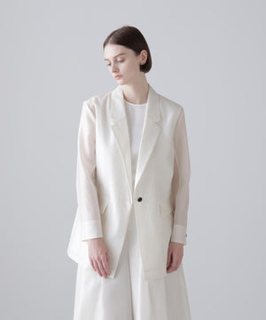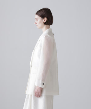 独特の艶と細かなシボが特徴なオーガンジー素材を使用したジャケットです。