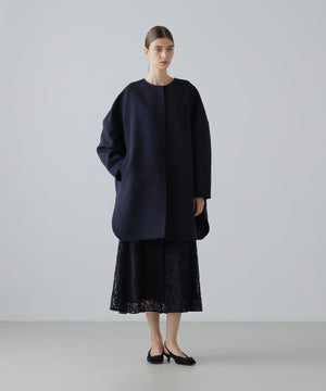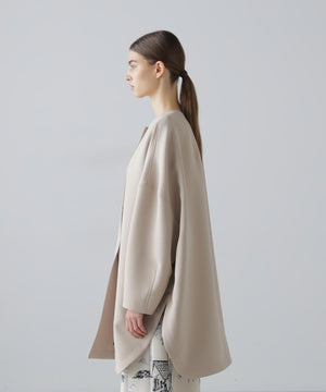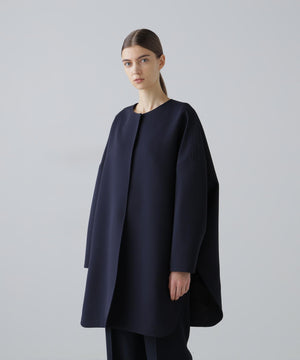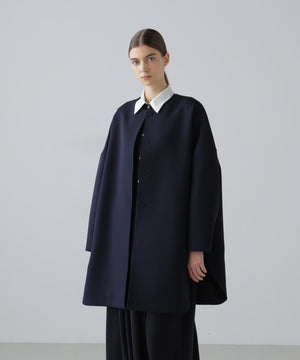 フォルム感が特徴のエアーダブルクロスノーカラーコート