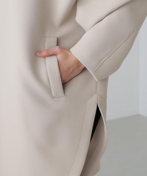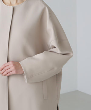 スポンデッシュで軽やかな印象の素材で仕上げられたノーカラーコートです。