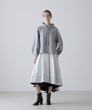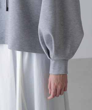 ドライでハリ感のあるダンボール素材を使用したフーディートップスです。