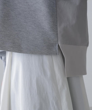 ルーズなシルエットでバックに入ったレイヤーデザインは同色の布帛とコンビネーションになっています。