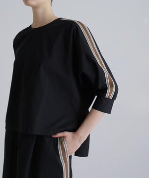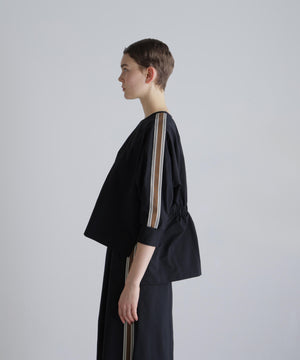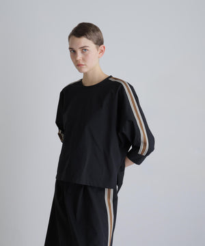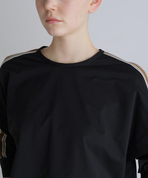 ストレッチ性のあるカットソー素材を使用したトップス。