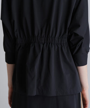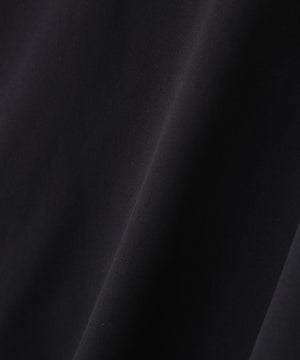 極細のポリエステルを46ゲージと言う非常に密な編み機にて編み上げることで、布帛の様な張り感を持たせた、適度な伸縮性のある非常に軽いジャージ素材で仕立てました。