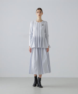 ウエストにかけて緩やかなカーブがとられたシルエットで袖はすっきりとした筒型のデザインになっています。