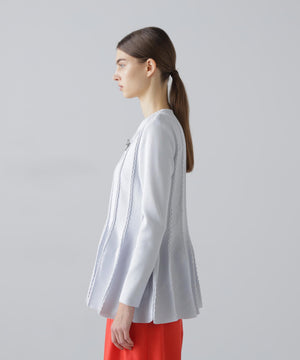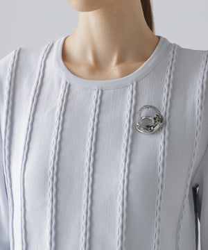 特殊な編み柄で細いケーブルの様なモチーフのデザインニットになります。