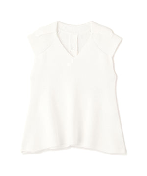 ポリエステル100%の膨らみのある糸で畦編みで仕上げられたニットプルオーバーです。