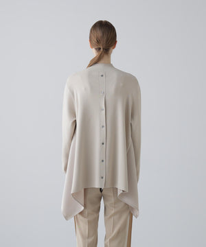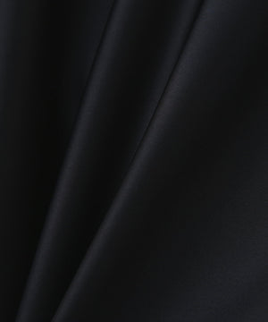 脇が長くなるデザインですが、一番裾のニットパーツをサテンより控えることで脇が下がりすぎず低身長の方でもバランスが取りやすくなっています。
