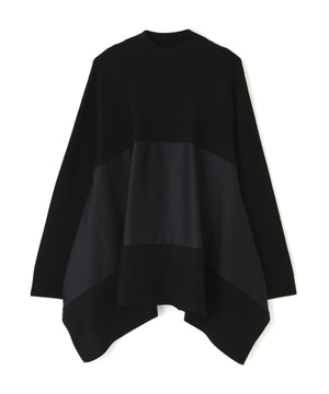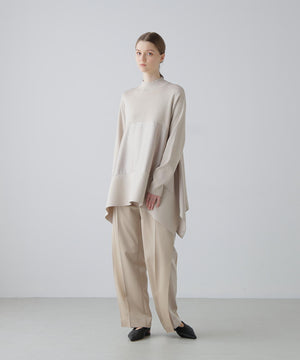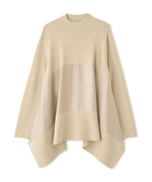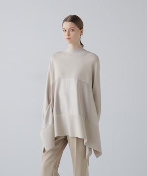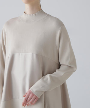 大胆な異素材切り替えがポイントのサテンコンビニット