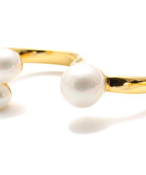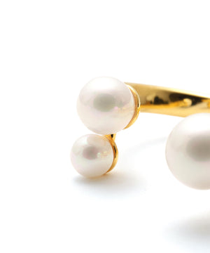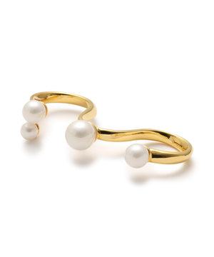3本の指にまたがってつけるタイプのリングでガラスパールがアシンメトリーについています。