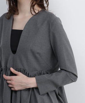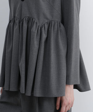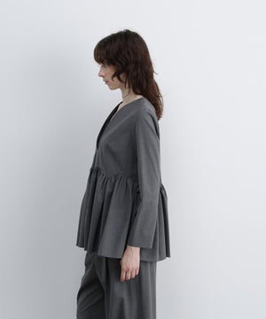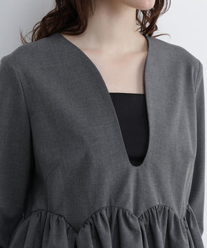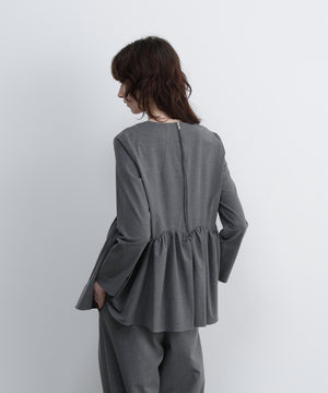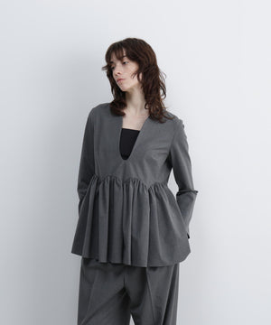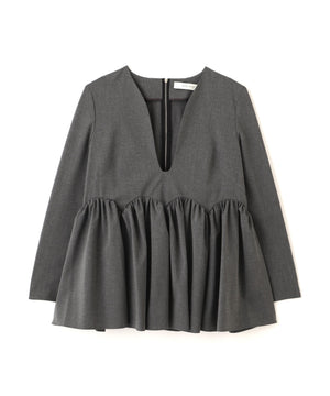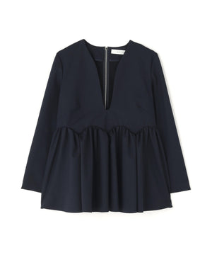 ネックはUカットのデザインでペプラムパーツもカーブになっておりデザイン性の高いブラウスです。