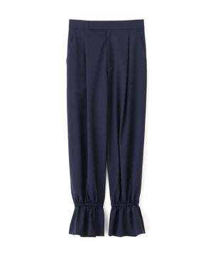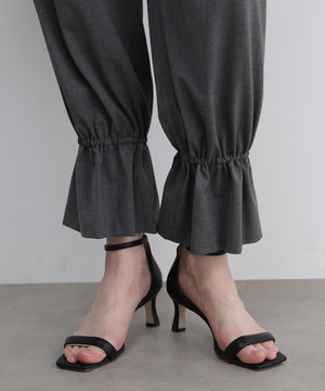 裾部分に細いゴムを入れキャンディーの包みのようなデザインがポイントのパンツです。