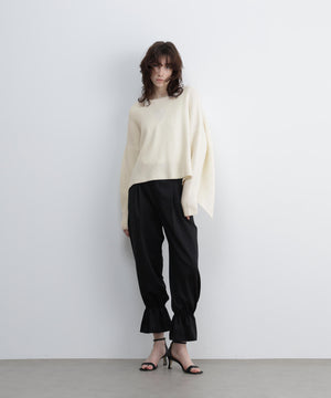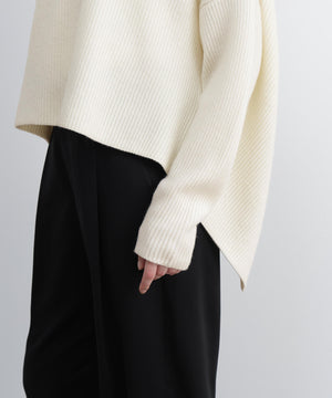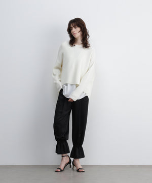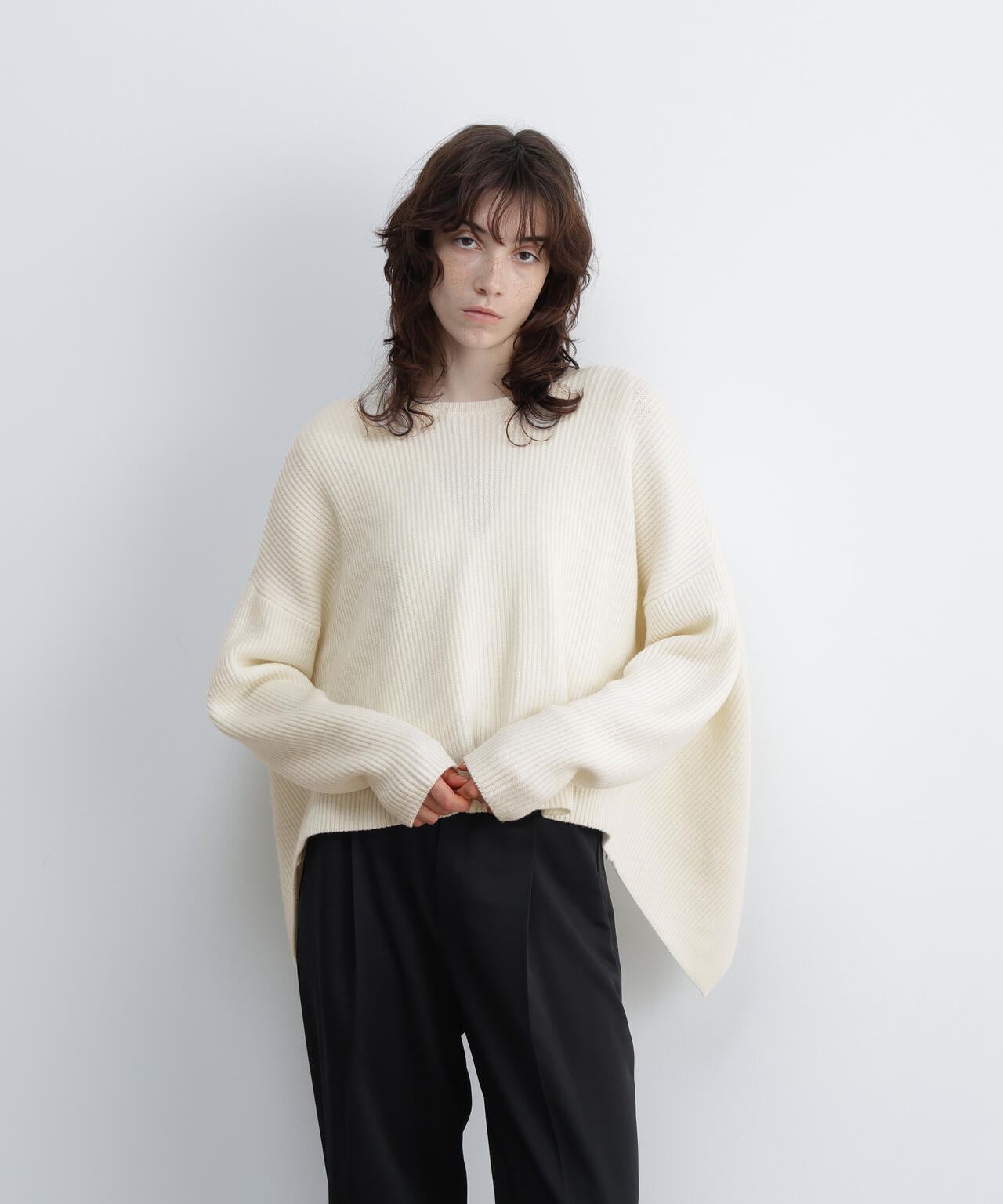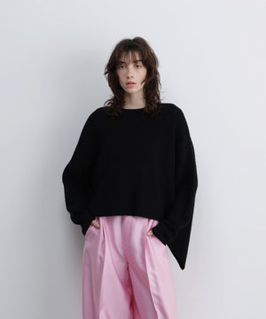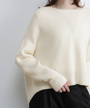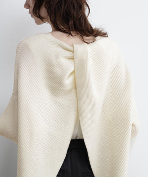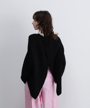 畦編みのバックツイストデザインのニットプルオーバーです。
