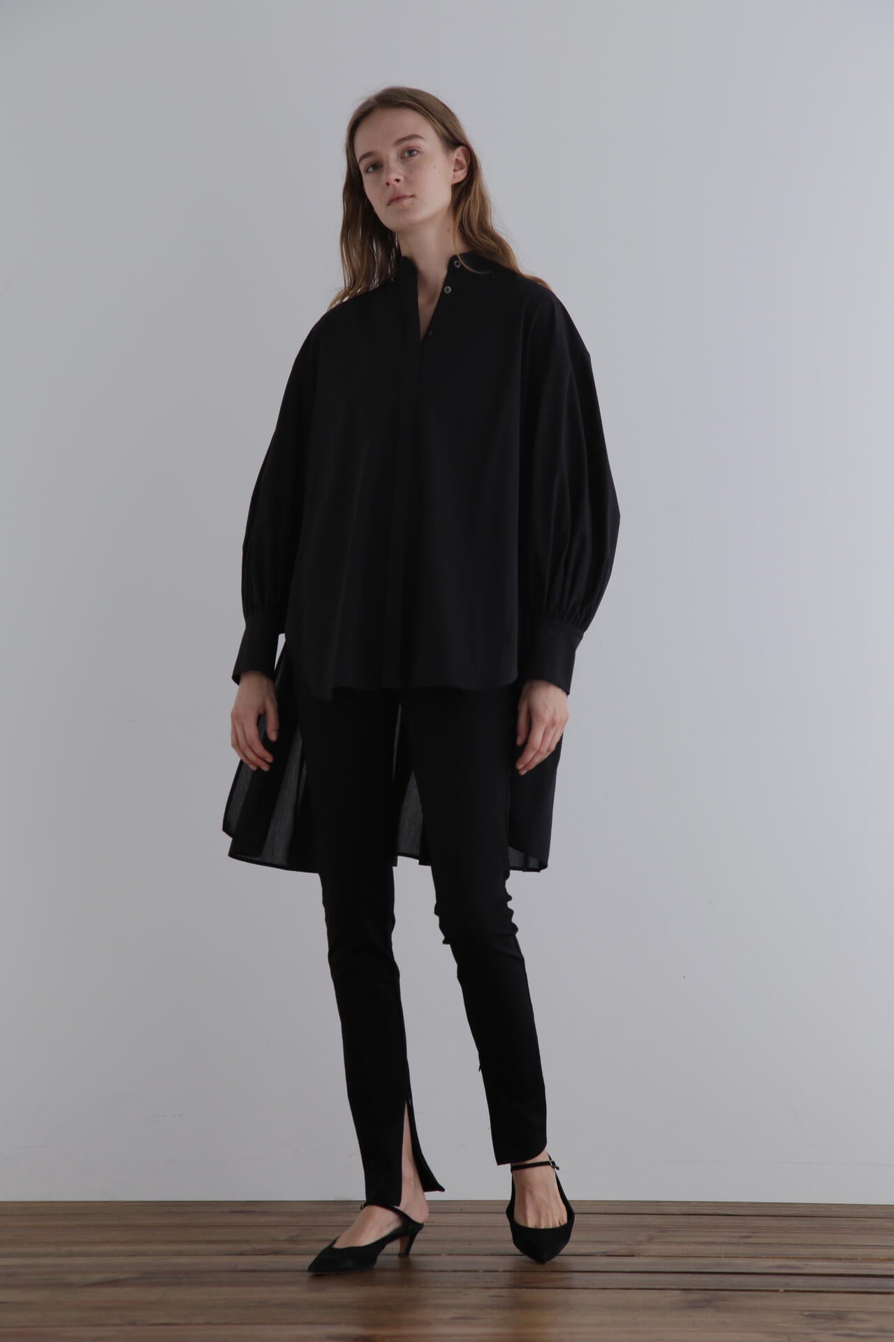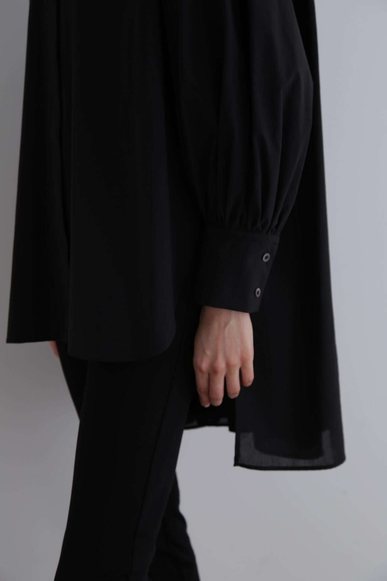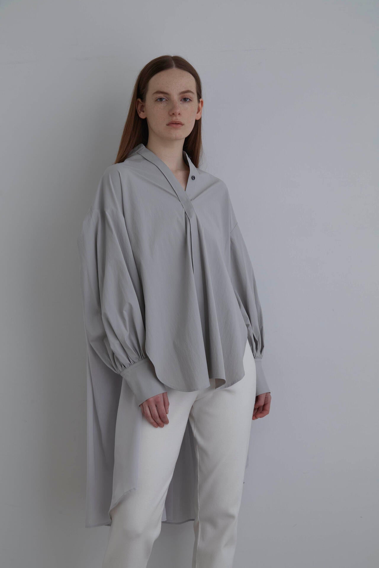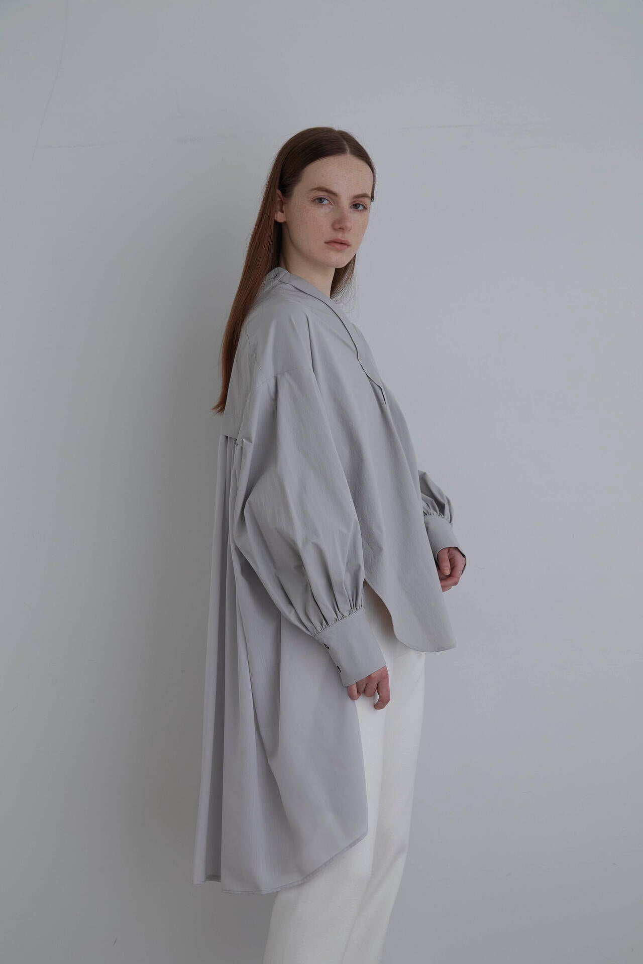 スタンドカラーの端正な雰囲気もありながら、たっぷりと贅沢に生地を使用しドラマティックなシルエットを楽しんでいただけるブラウスです。