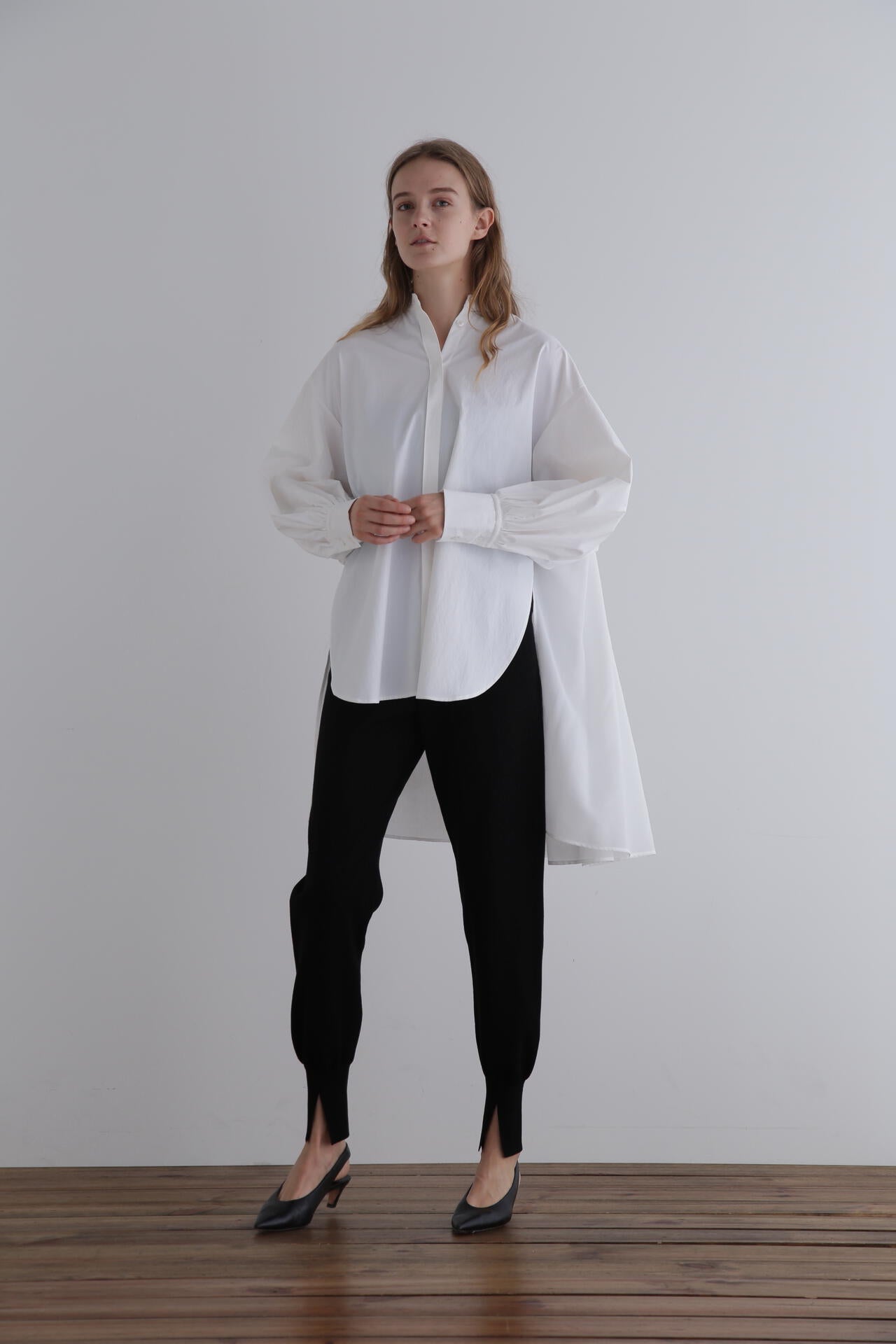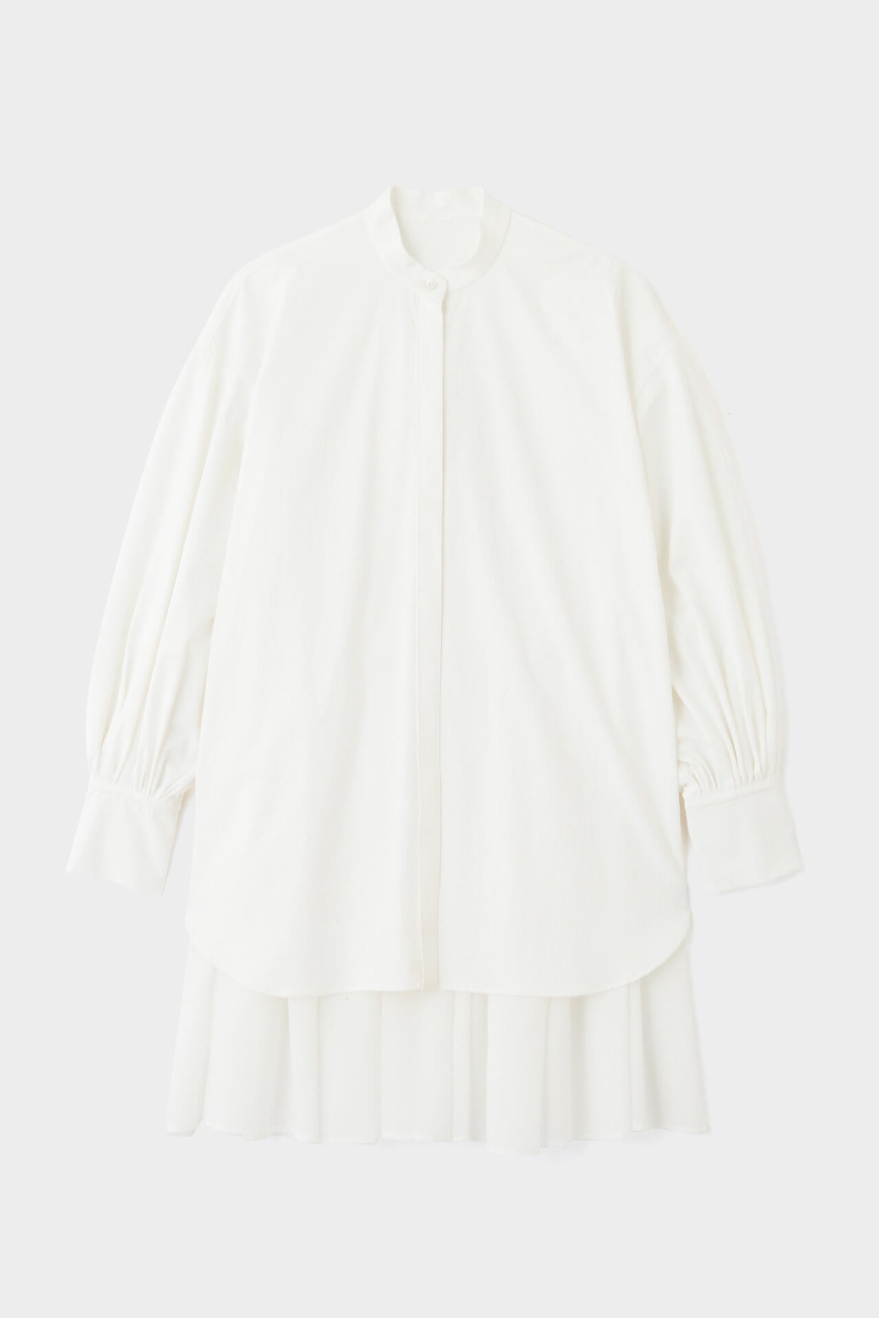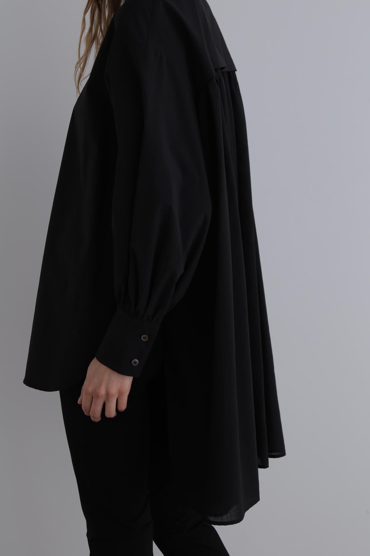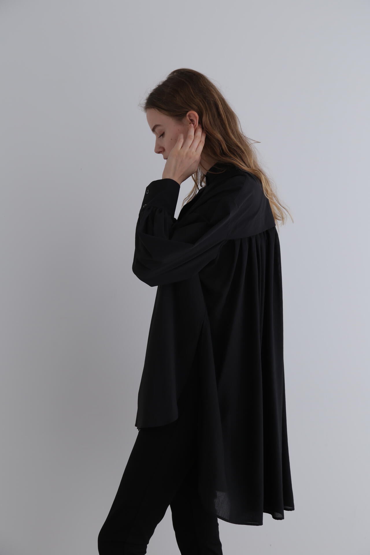 スタンドカラーの端正な雰囲気もありながら、たっぷりと贅沢に生地を使用しドラマティックなシルエットを楽しんでいただけるブラウスです。