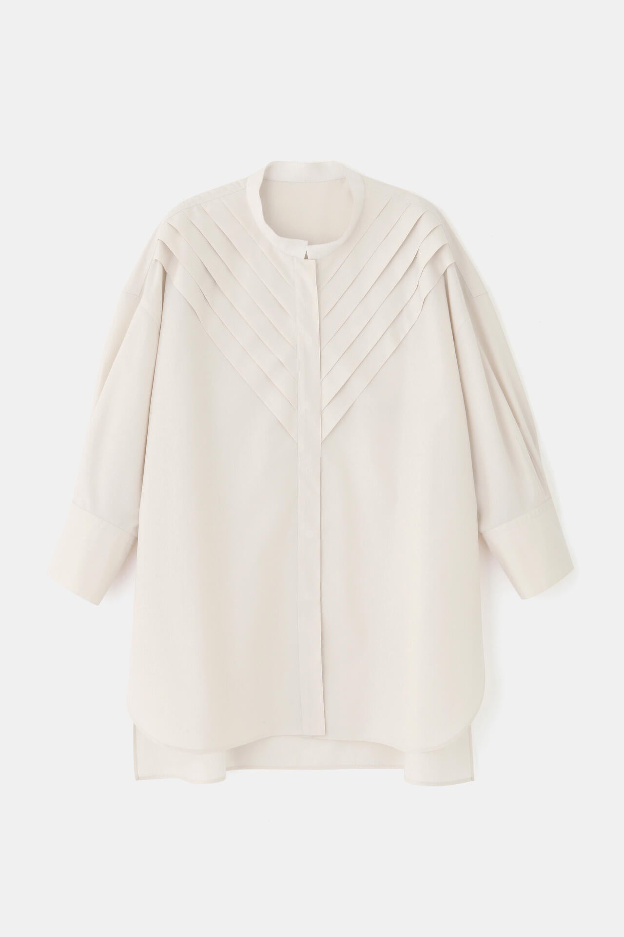 タックディテールをモードかつグラフィカルに表現した、テクニカルなデザインブラウスです。