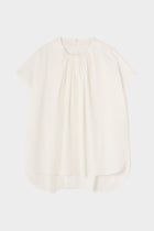 ゆったりとしたシンプルなシルエットがリラックスモダンなデザインのブラウス。