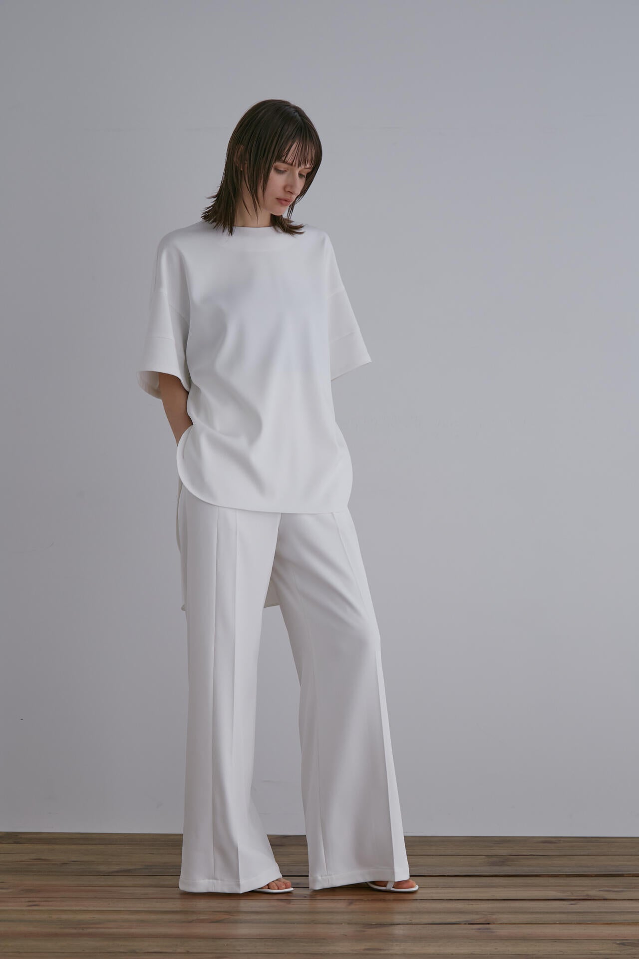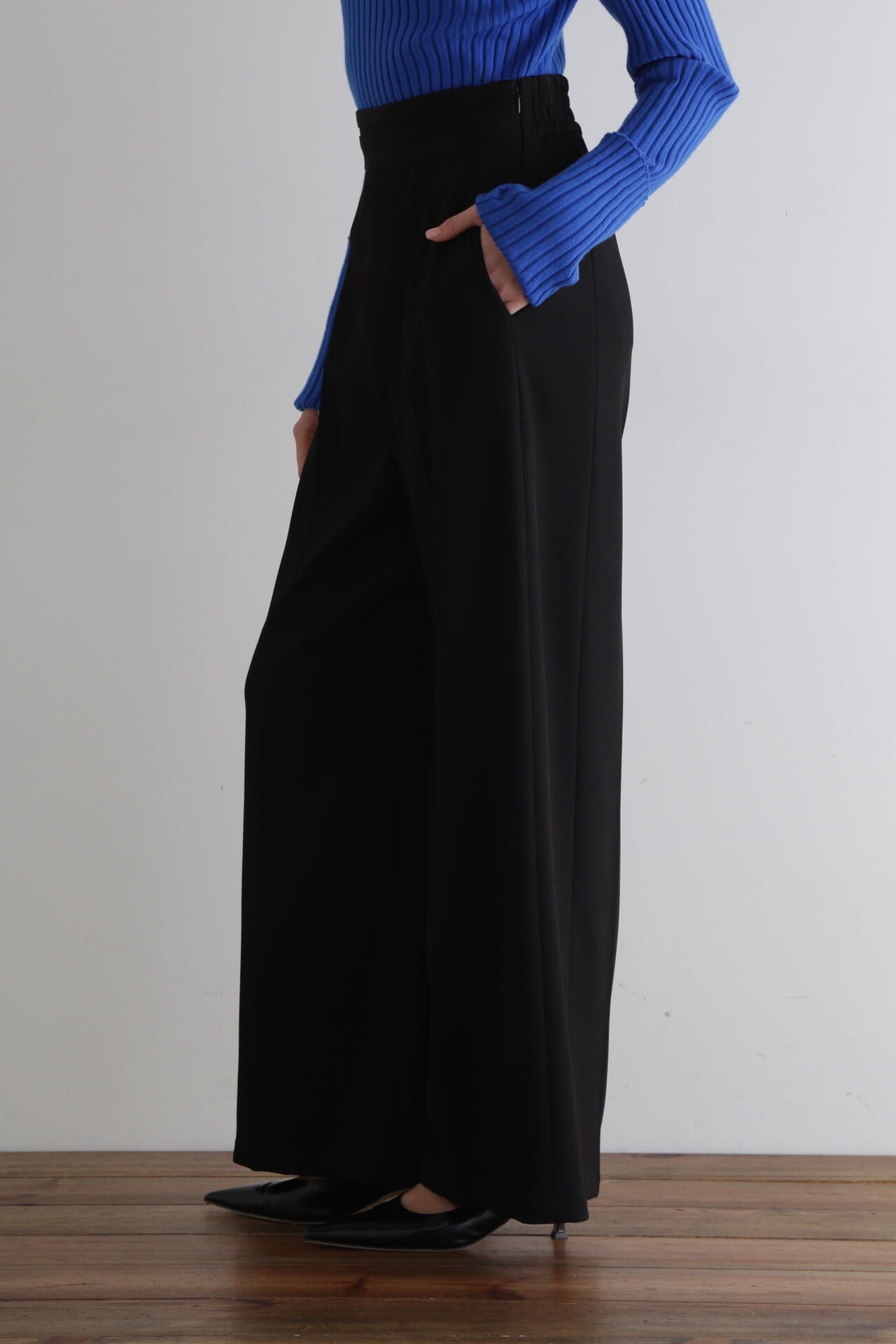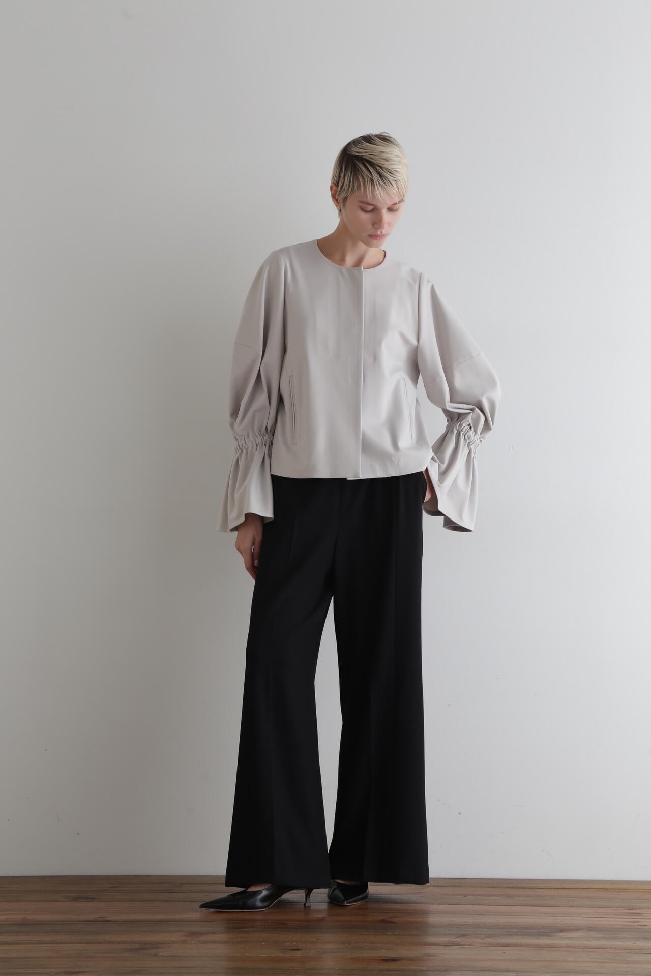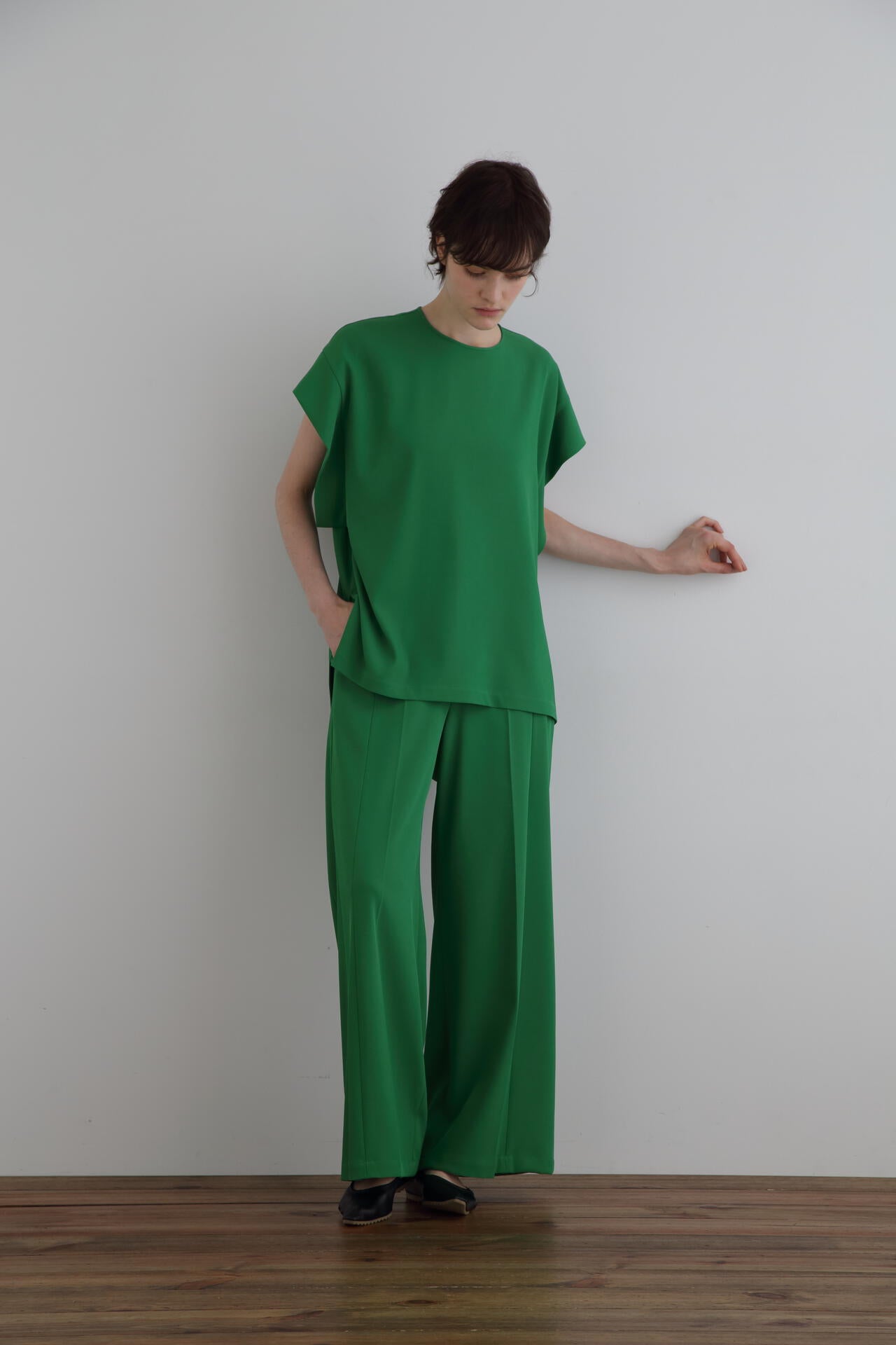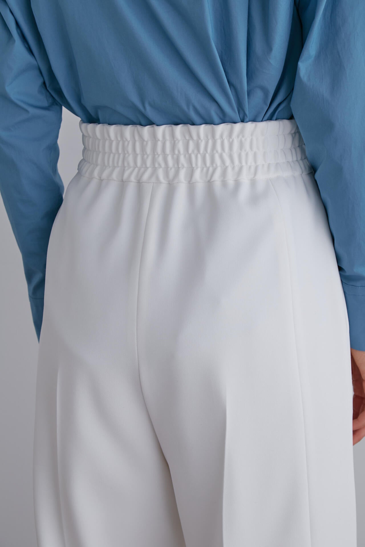 フロントのタックが立体的なシルエットを生み出し、美しいドレープ感を演出します。