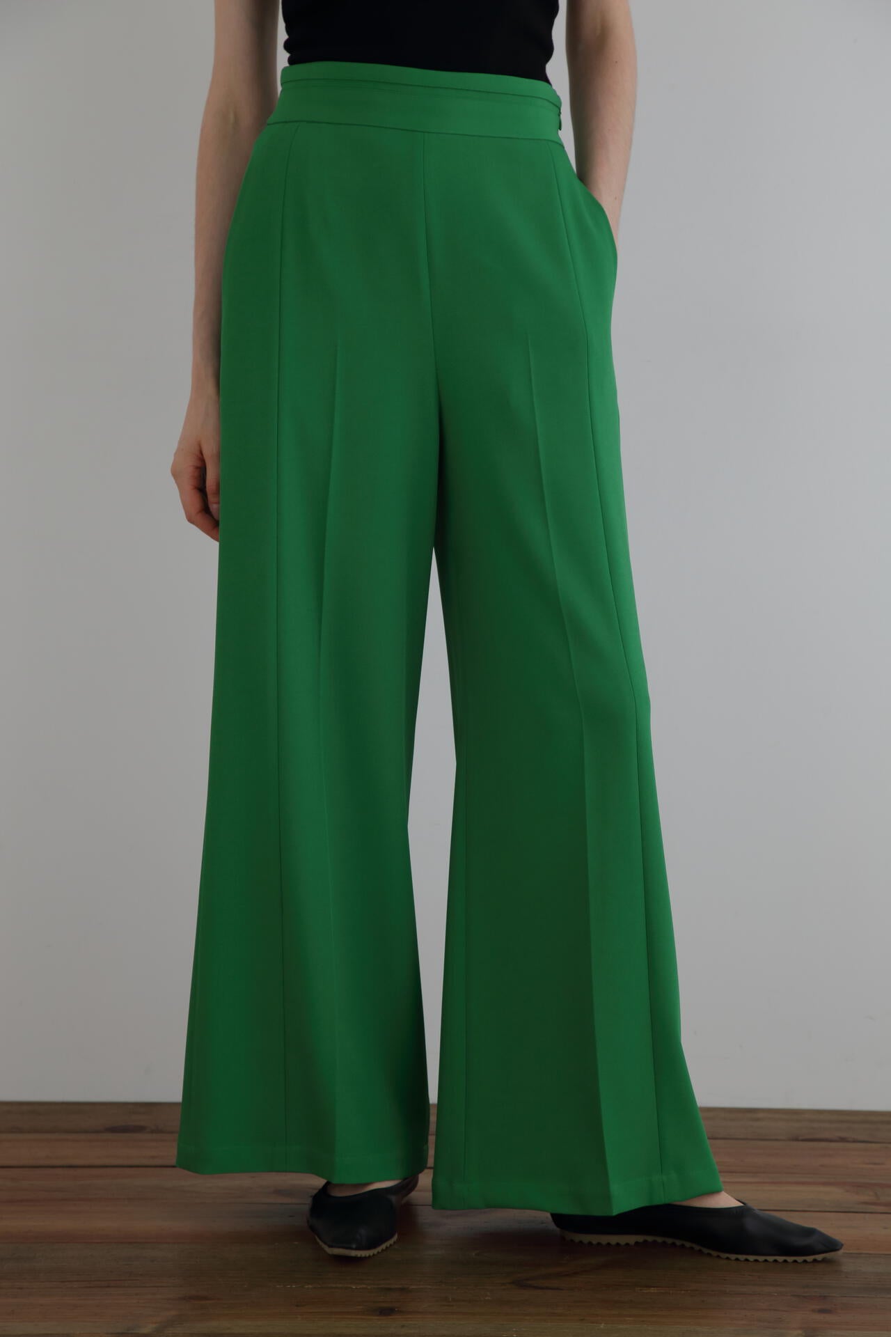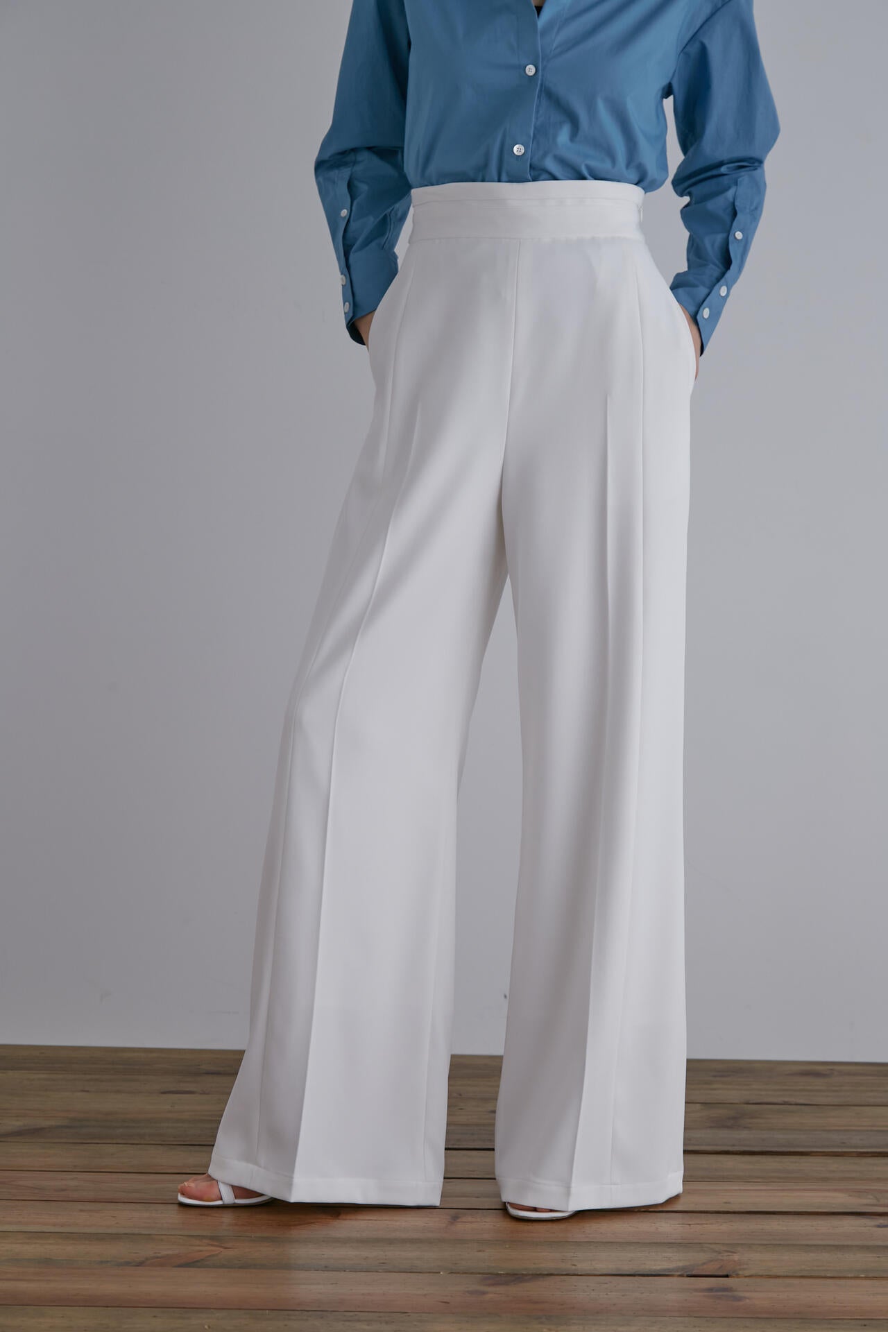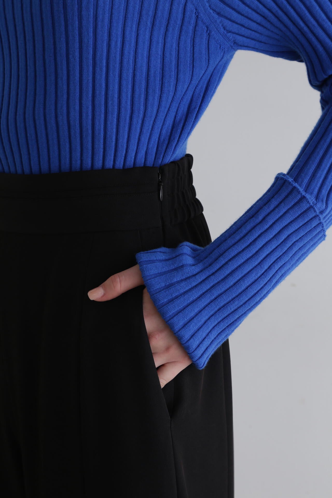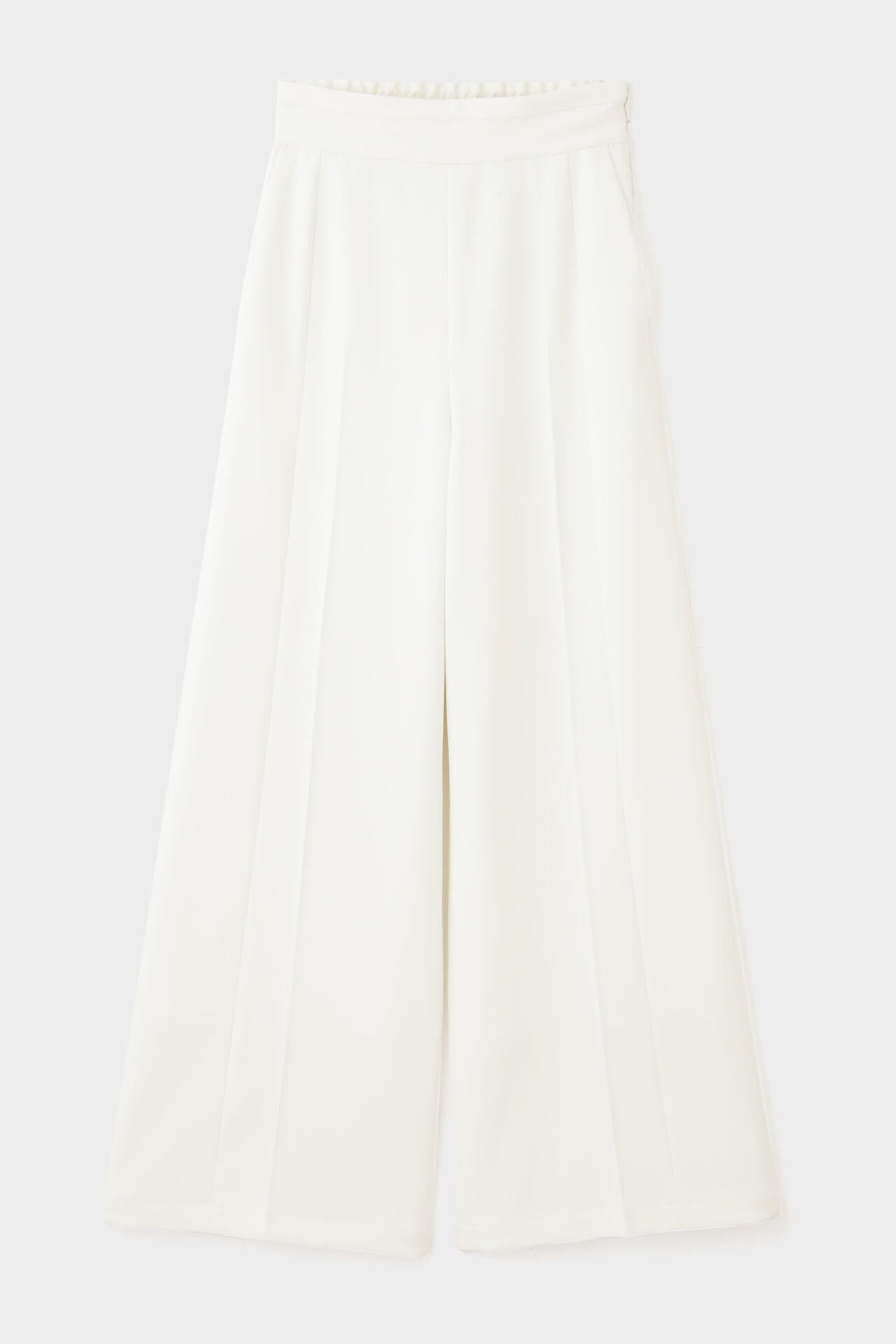 フロントのタックが立体的なシルエットを生み出し、美しいドレープ感を演出します。