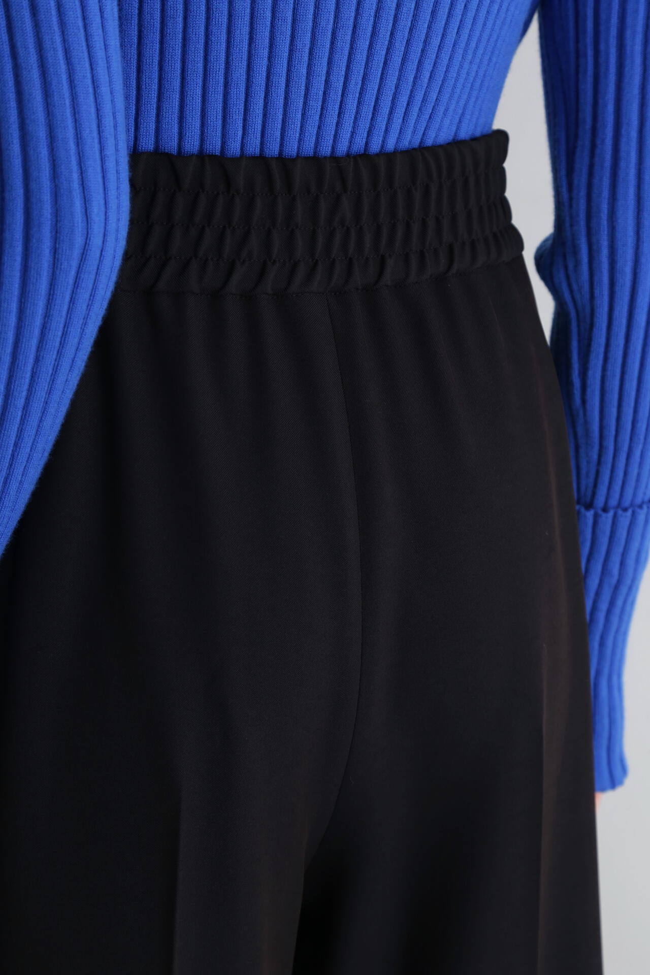 程よい厚みで身体のラインを拾いづらく、ジャージーのようなソフトな肌触りとストレッチ性が特徴の二重織素材です。