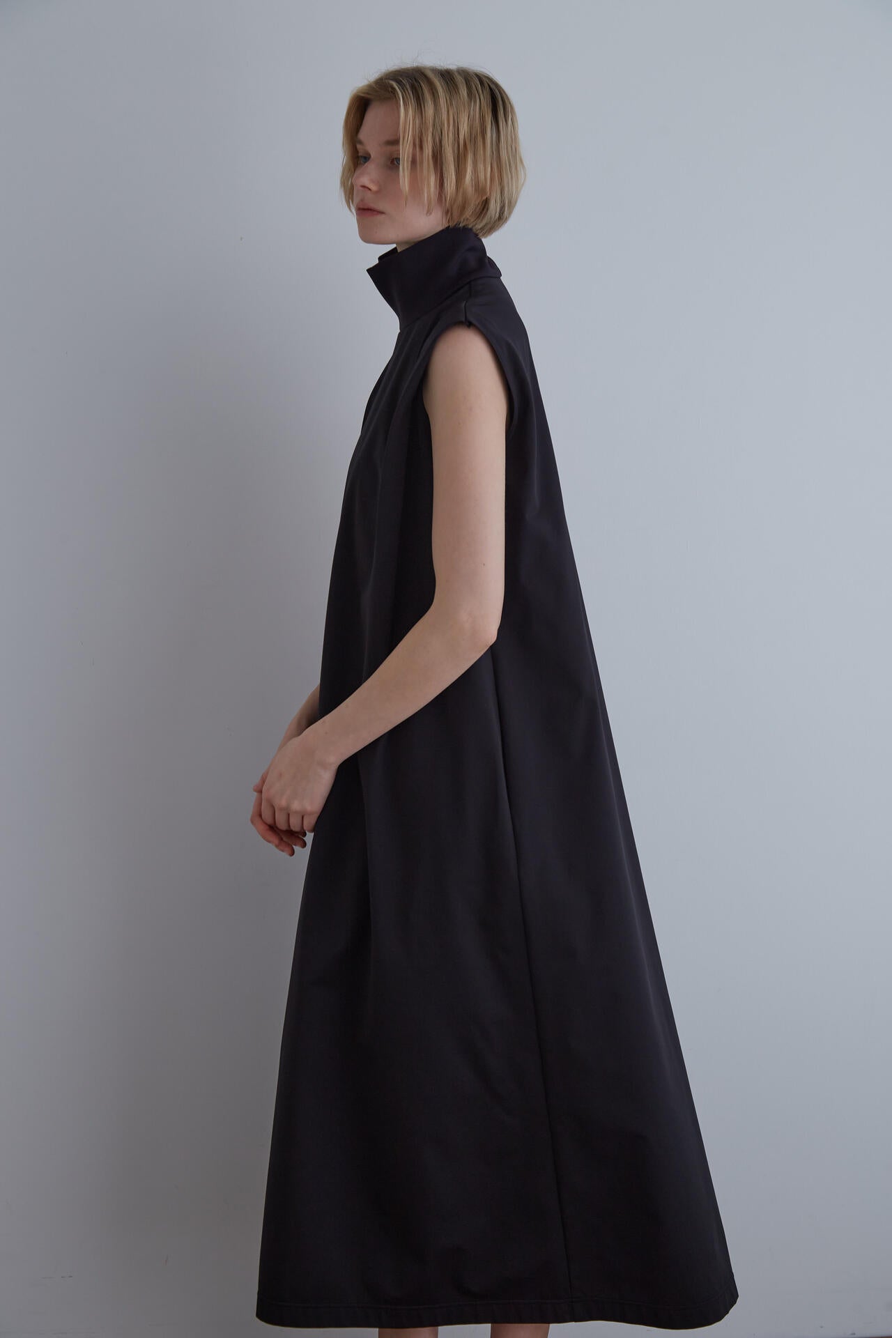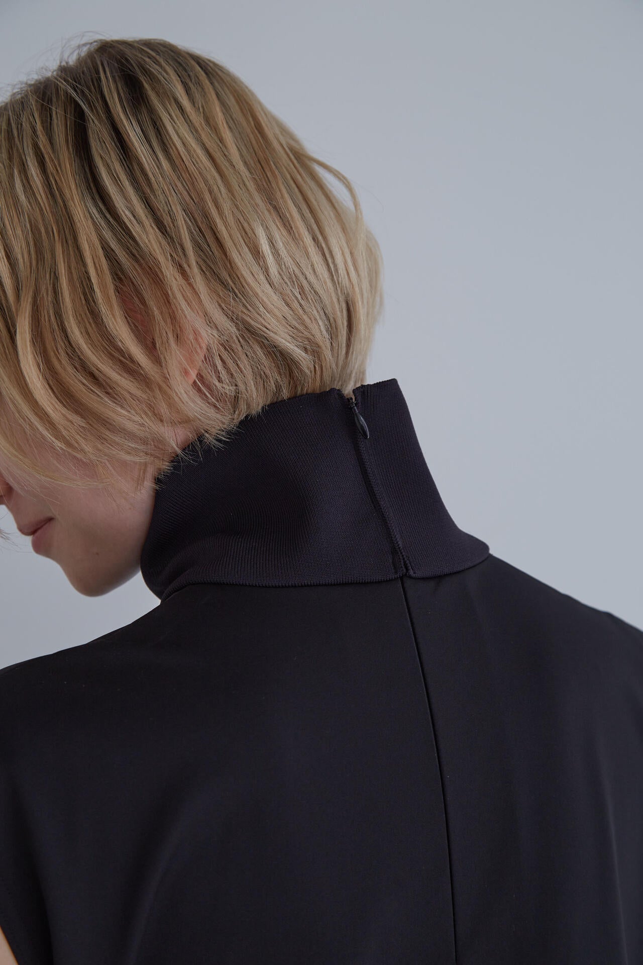 シルエットは、ハイネックにタックショルダーのボクシーシルエット。