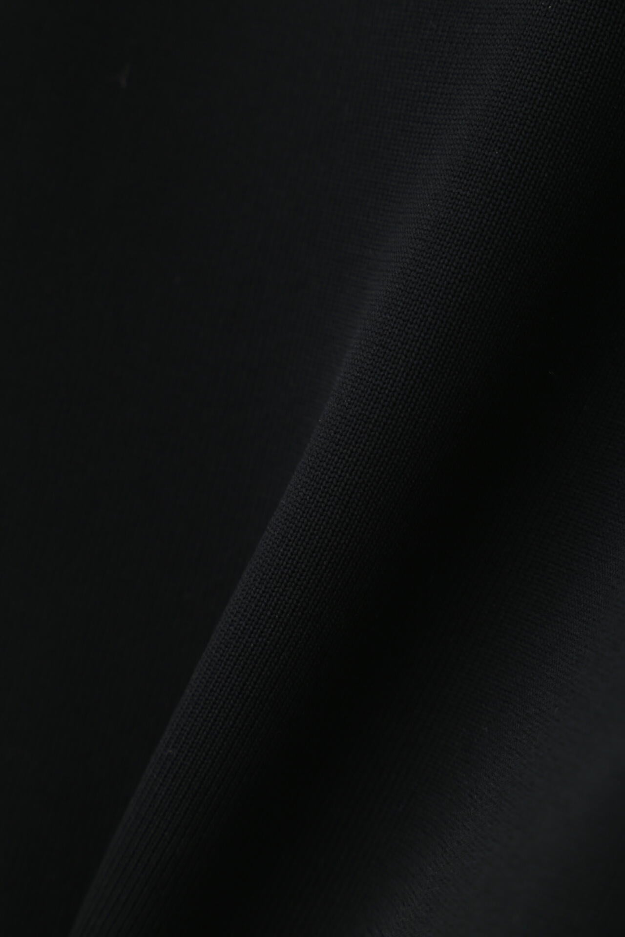 すっきりとしたシルエットで脚長効果があり、裾のスリットが抜け感と上品さを演出。