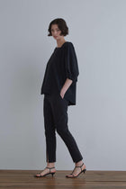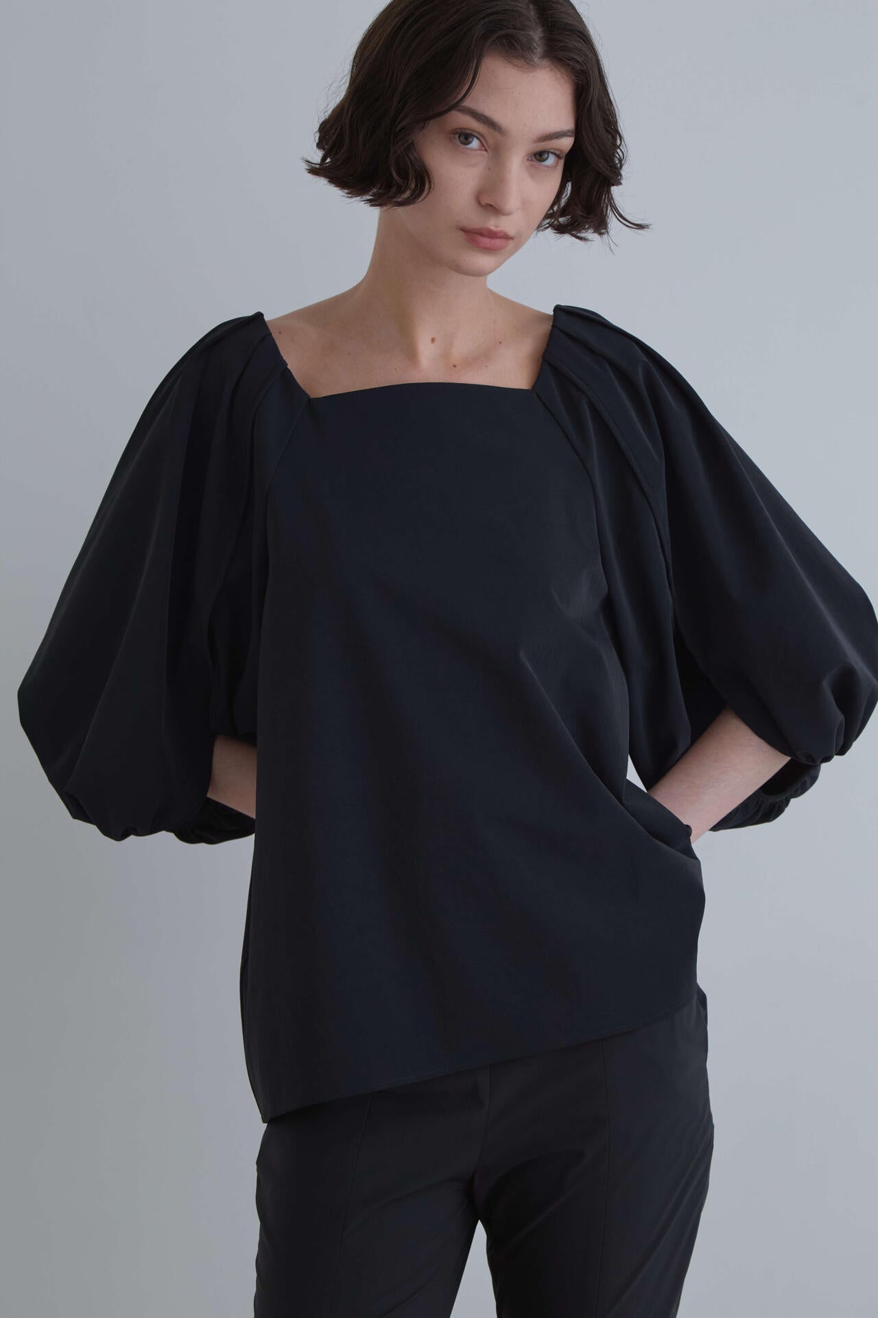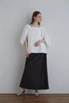 スクエアカットのヘルシーなデコルテ見せのデザインによって、軽やかなら抜け感がありながら、身頃はシンプルに緩やかなAラインのシルエットで大人っぽく着ていただけます。