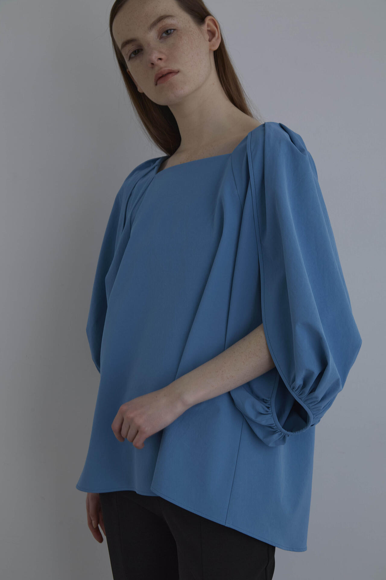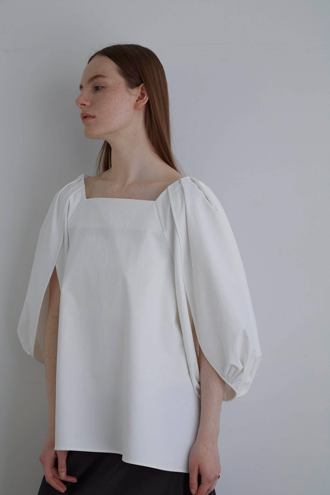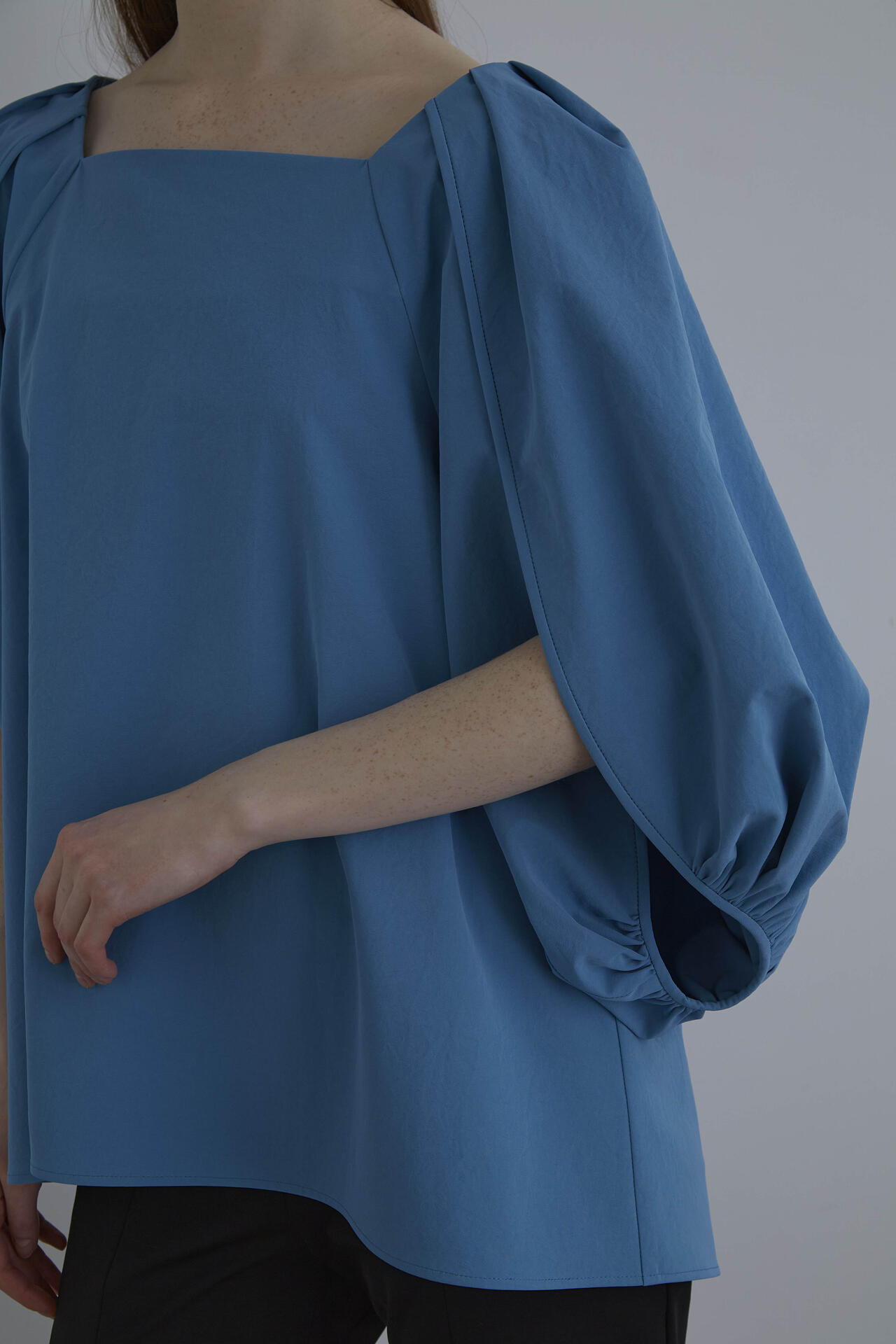 ドラマティックなボリュームスリーブはスリットが入ったデザイン。