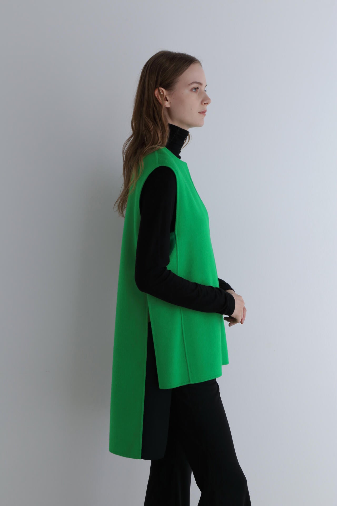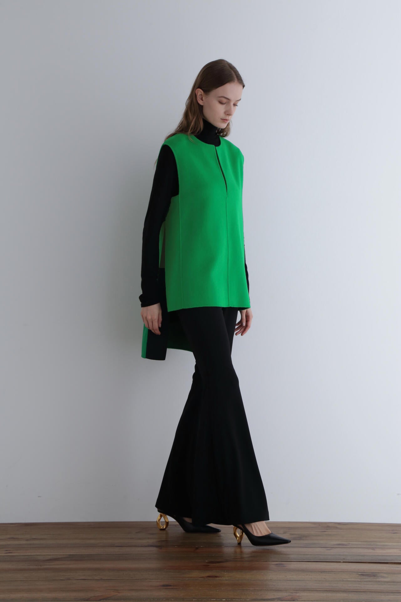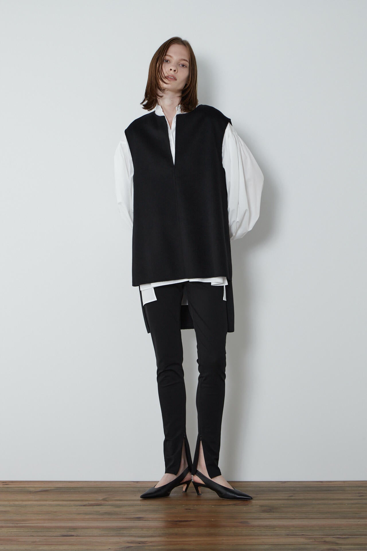 脇のスリット部分のニットリブ使いがリバーのエレガントな表情にスポーティな抜け感を感じさせるデザインです。