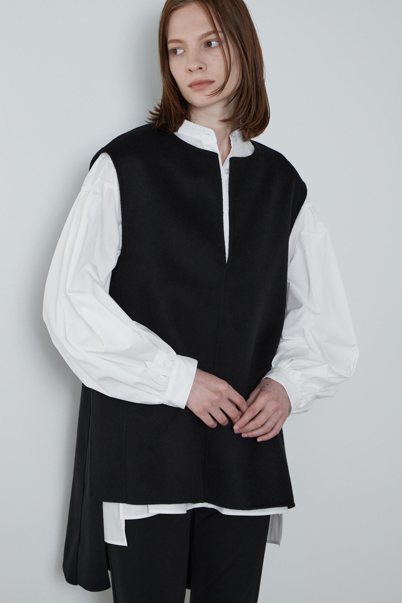 コート地を使用しながらも非常に軽く柔らかく仕立てた、大人のための贅沢なブラウスです。