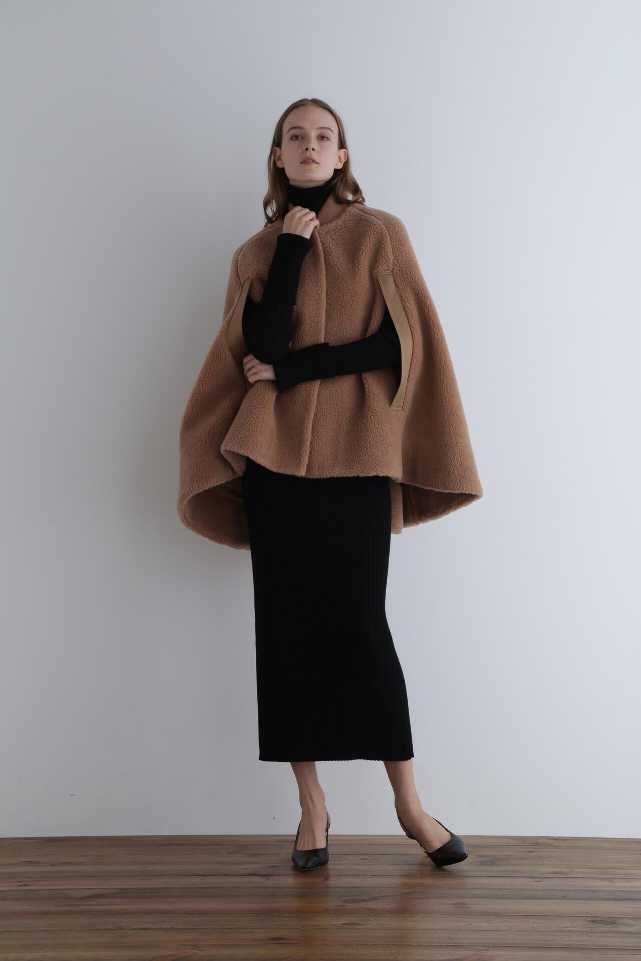 トレンドのボア素材をルフィルらしくエレガントに仕立てたケープアウター。