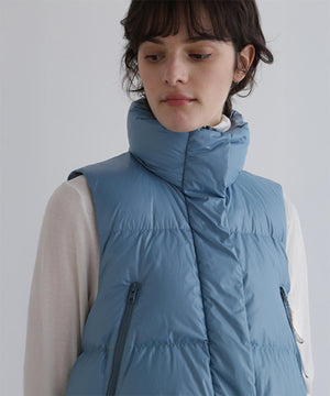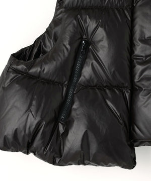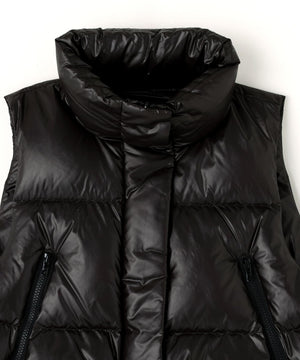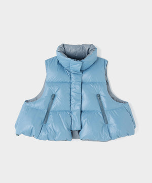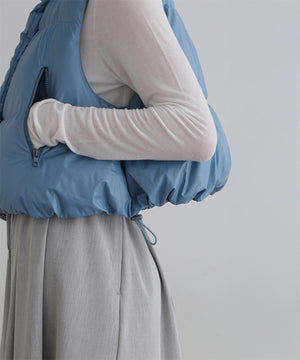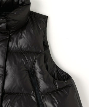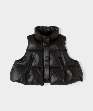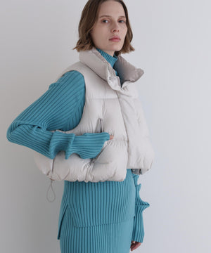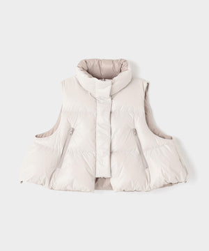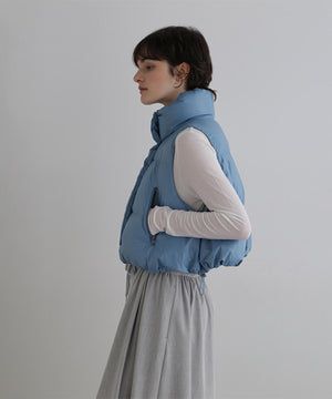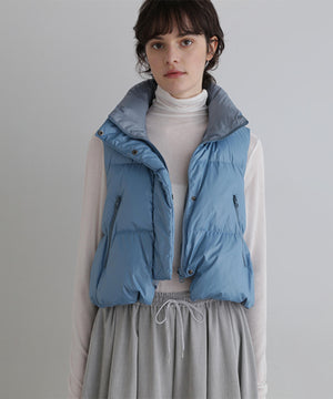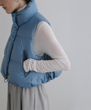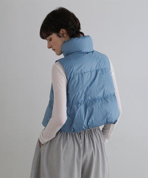 ジレやベストのようにレイヤードアテムとして楽しめるショート丈のダウンベスト。