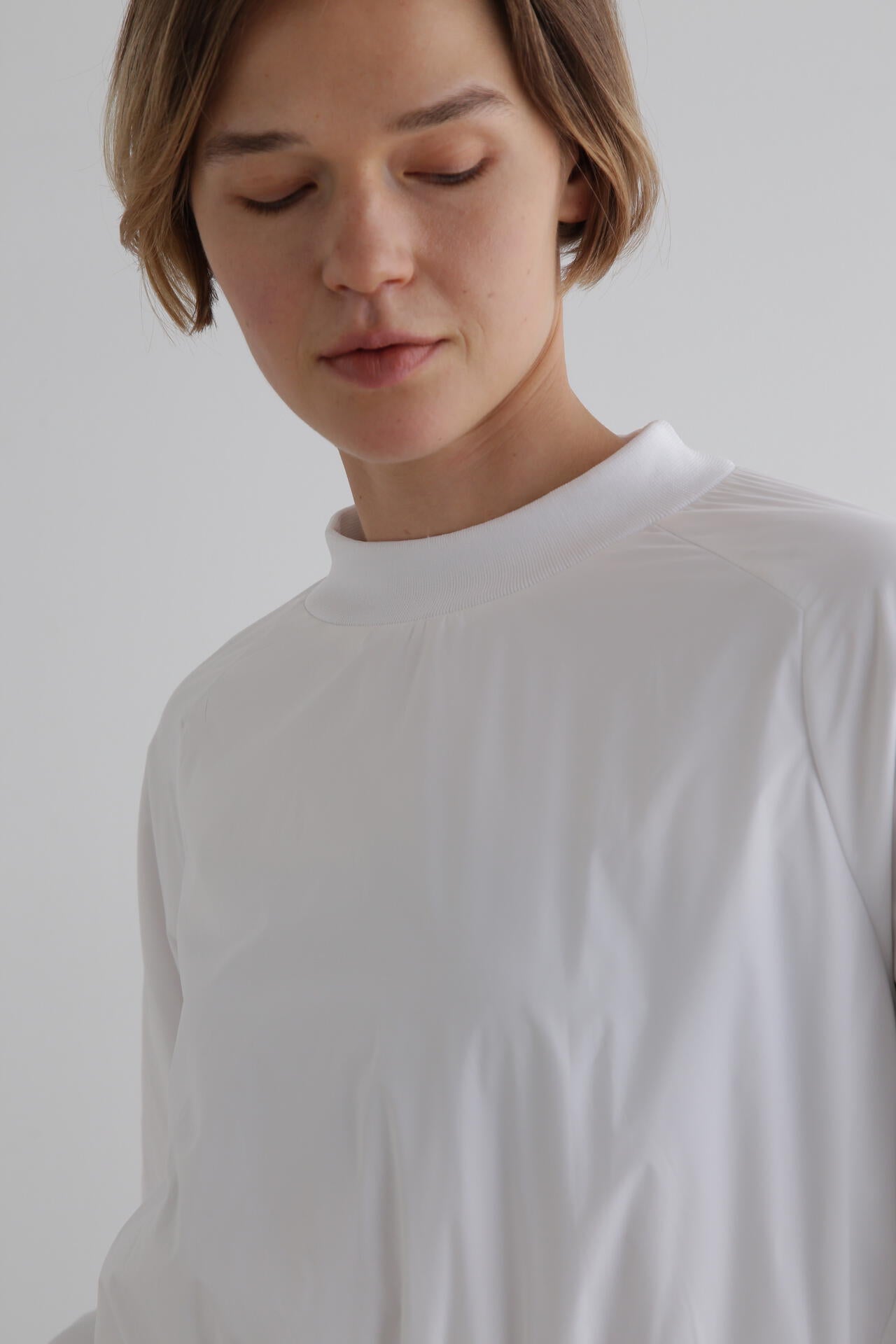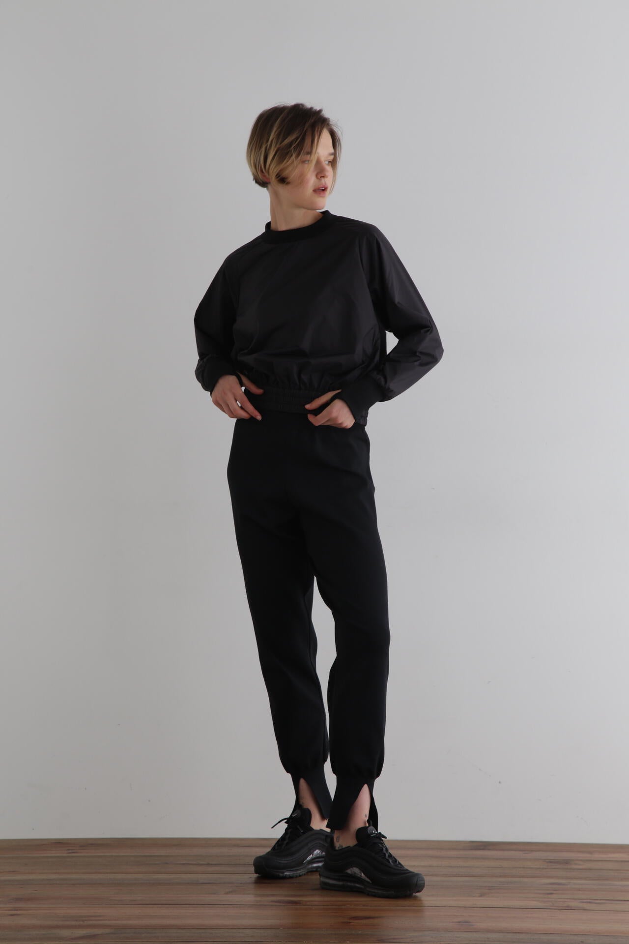 オーバーサイズですがショート丈なのでコンパクトにすっきりと着用いただけます。
