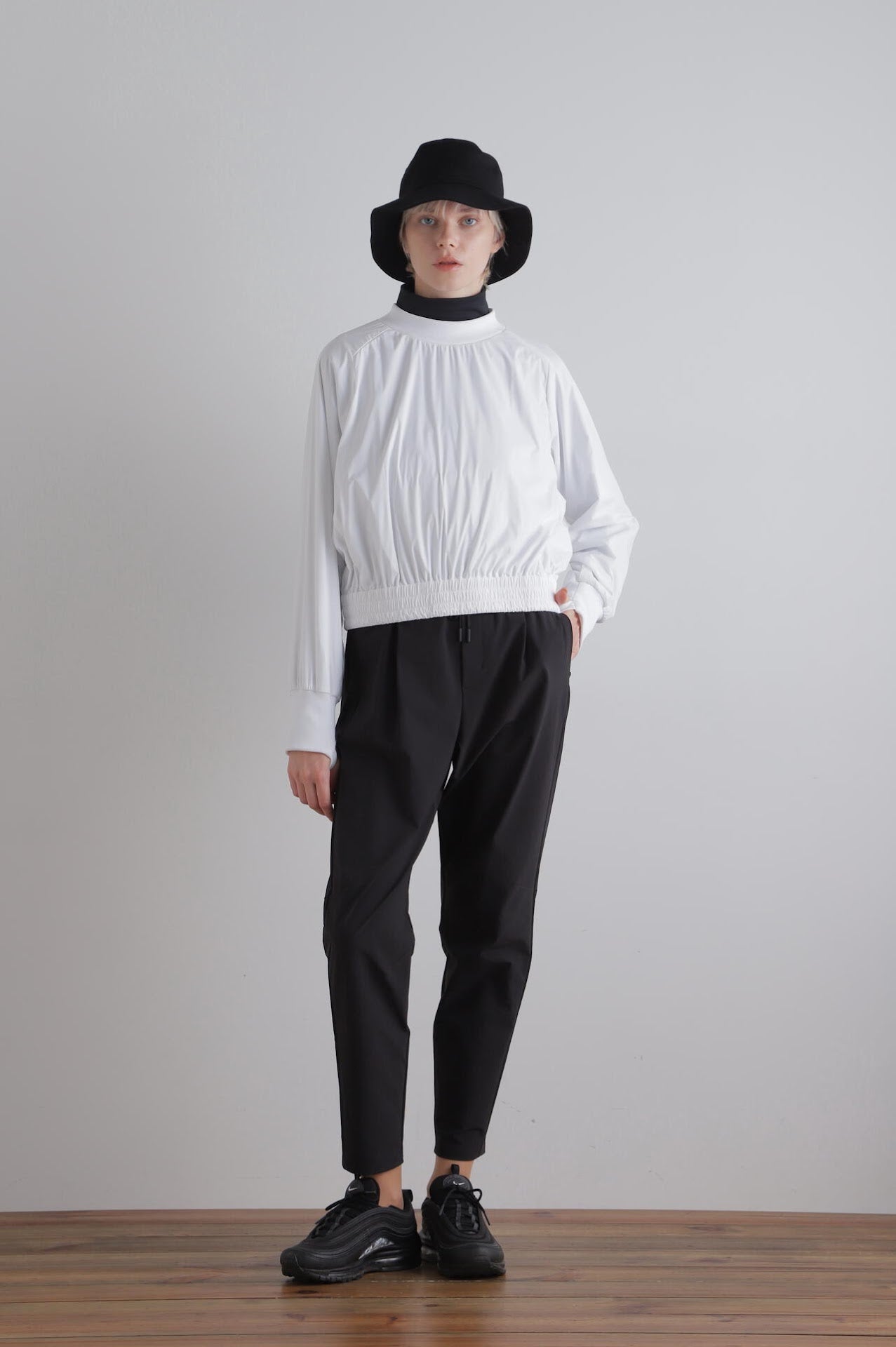 長めに持たせた袖には指ぬきがあり、手の甲まで覆える日避けを考慮したデザインになっています。
