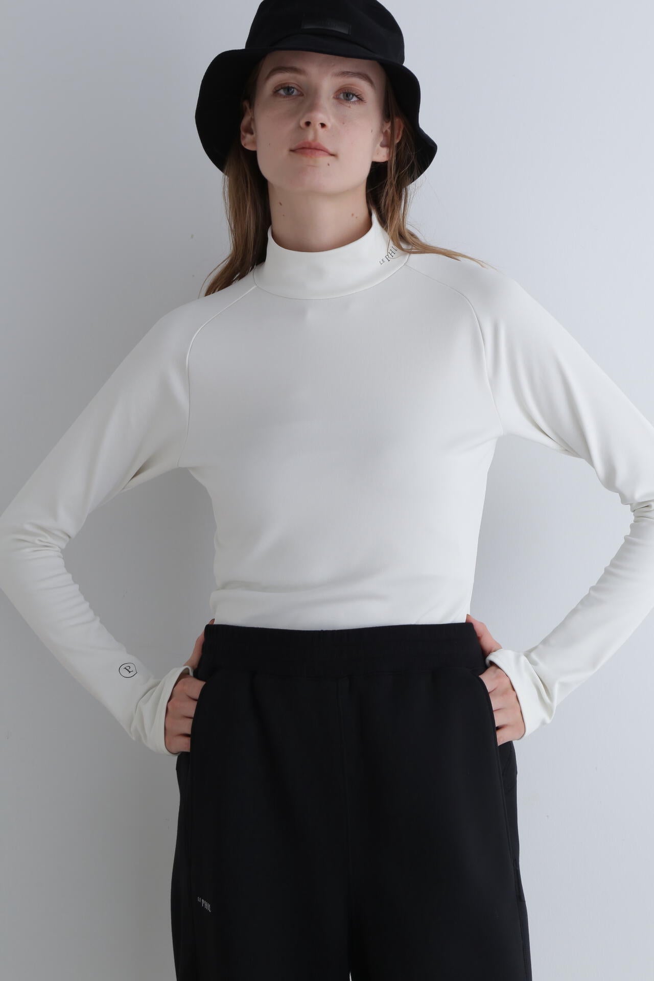 高めのネックにロゴデザインがポイントになっています。