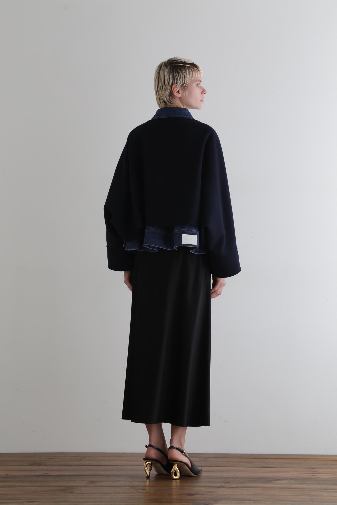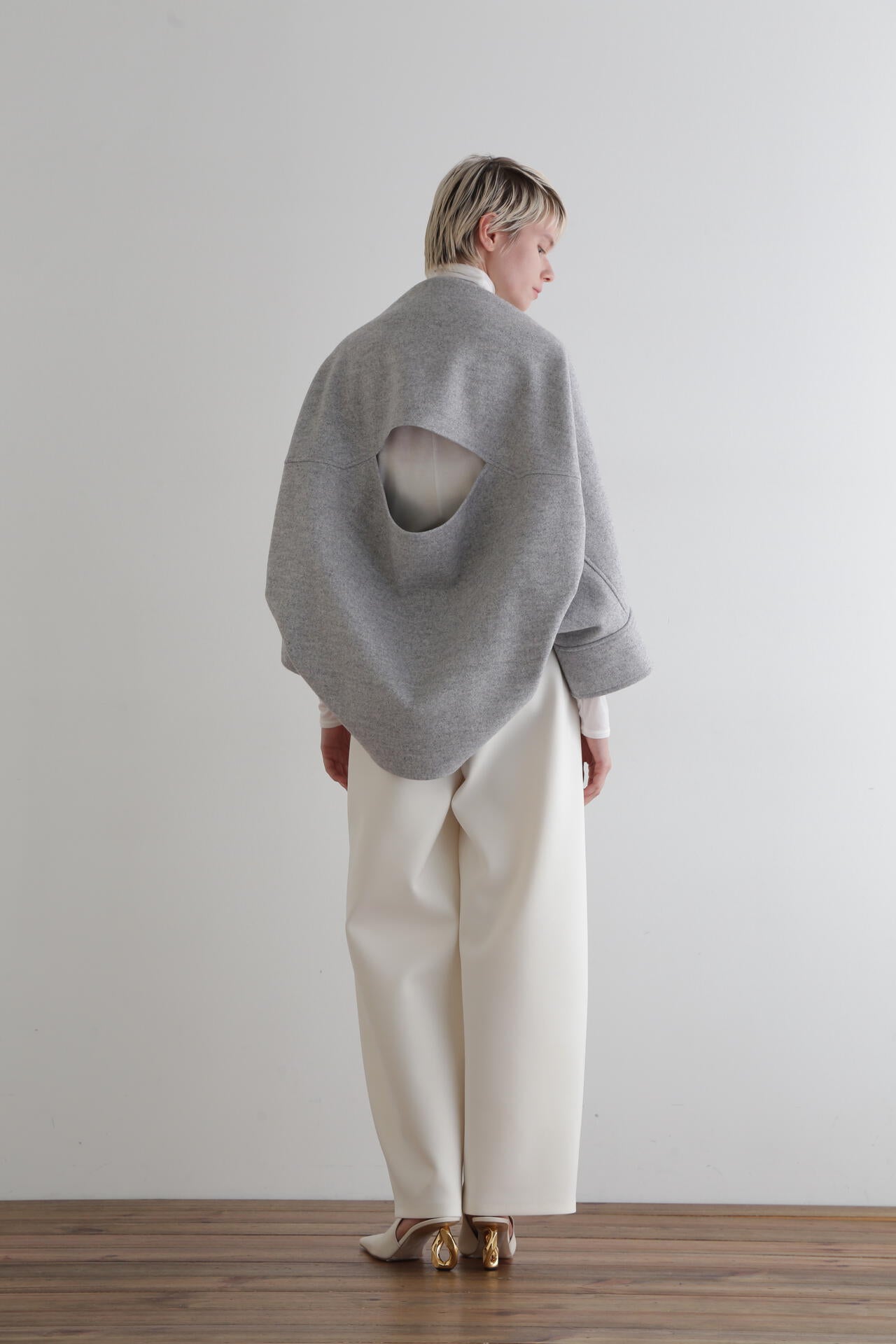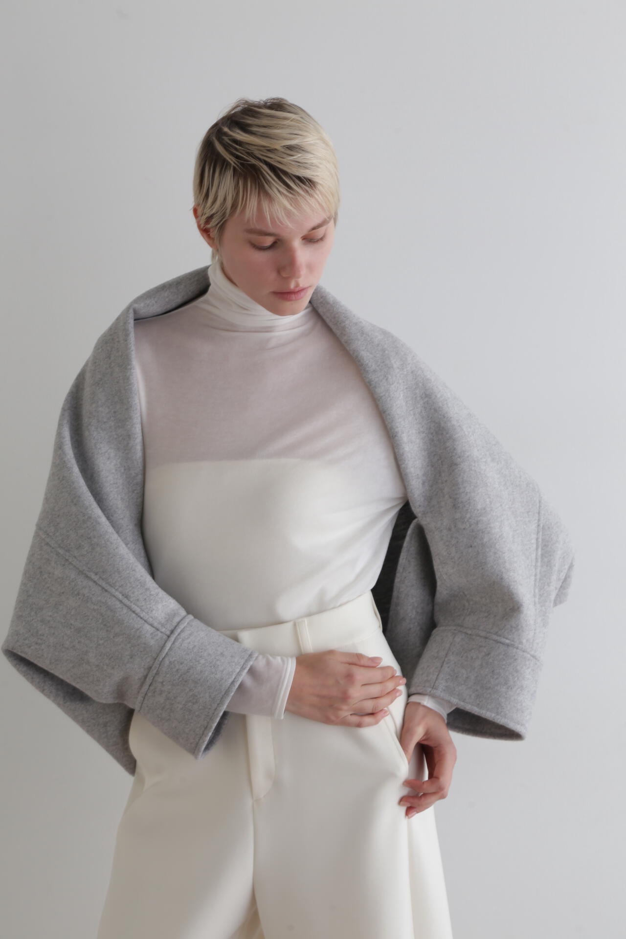 袖を通すと、たっぷり持たせた生地のゆとりが独特のフォルムを生み出し、抜け感のあるシルエットに。
