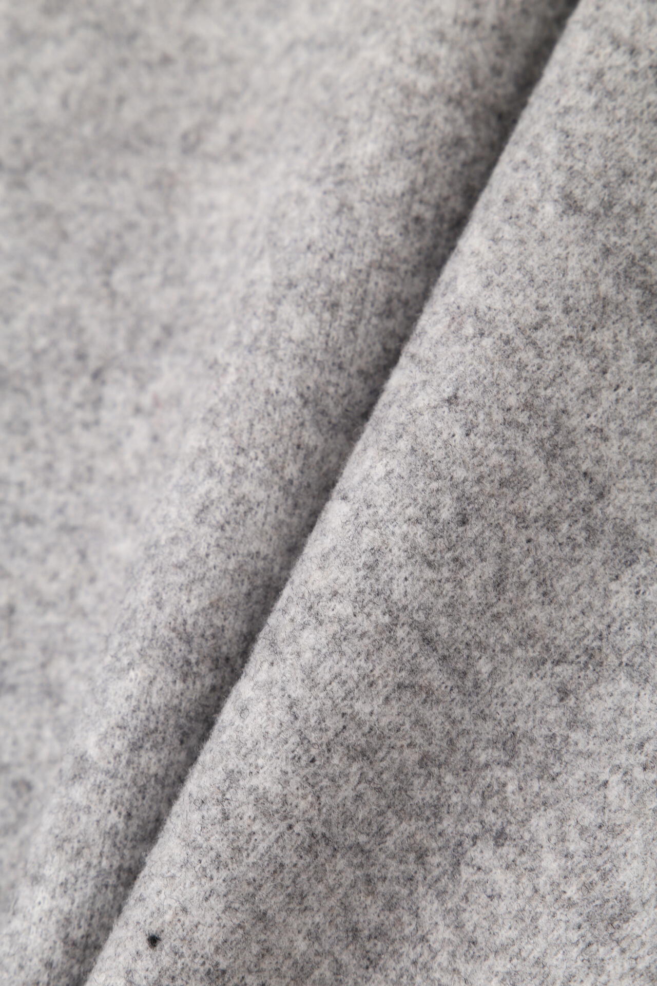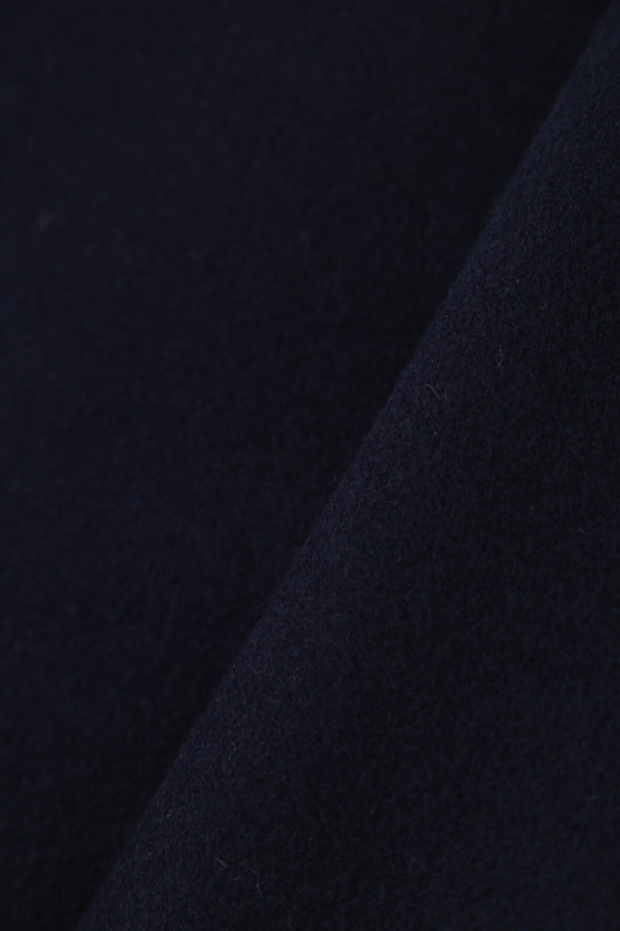 ウールのような温かみが特徴なポリエステルに、ウールを混紡させた膨らみのある糸を使用しダブル組織に編んだ素材をベースに、ニードルパンチ加工(針で生地をたたく)を何度も施すことで毛羽のある膨らみとウオーム感を持たせたジャージ素材です。