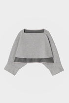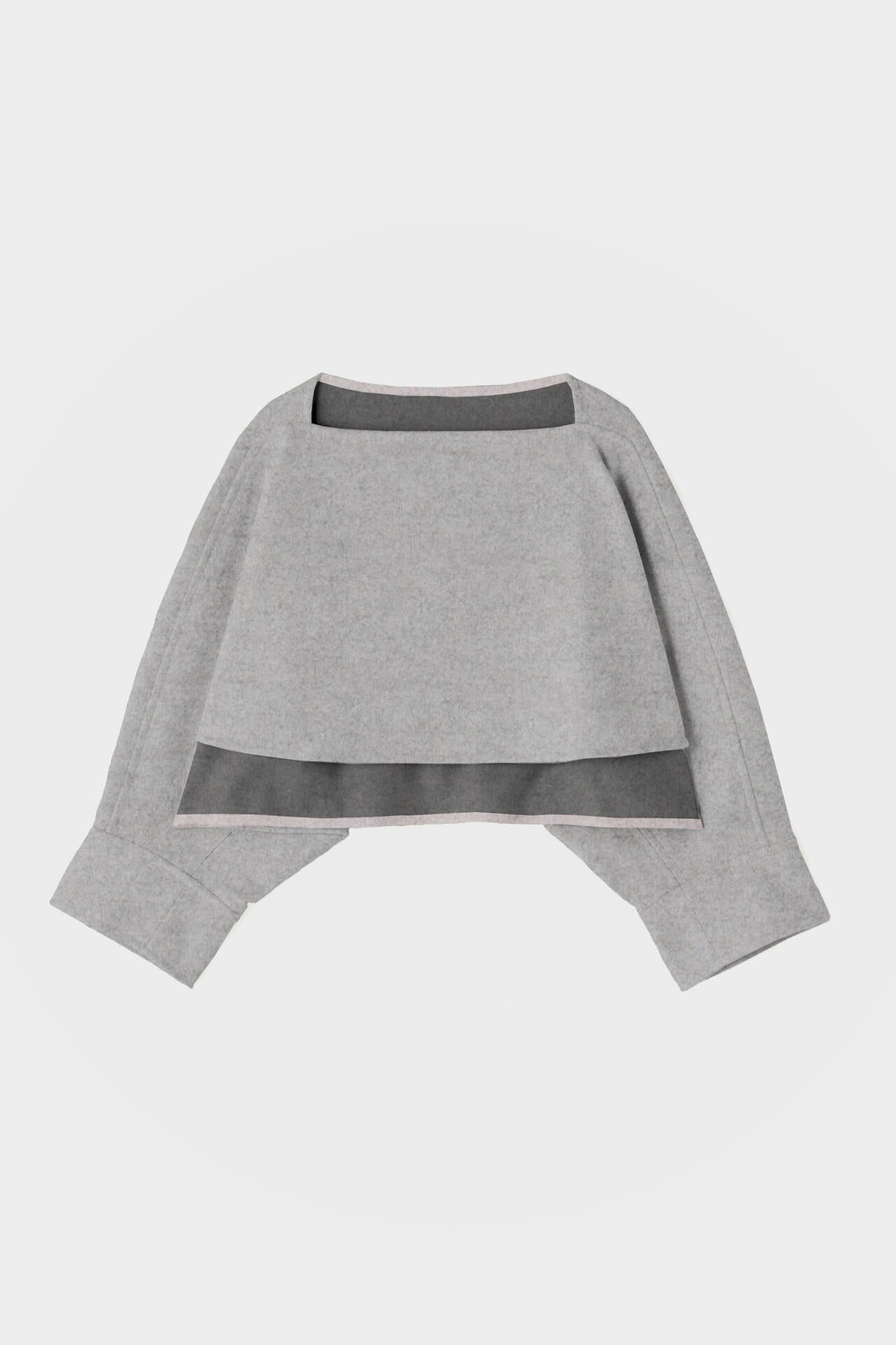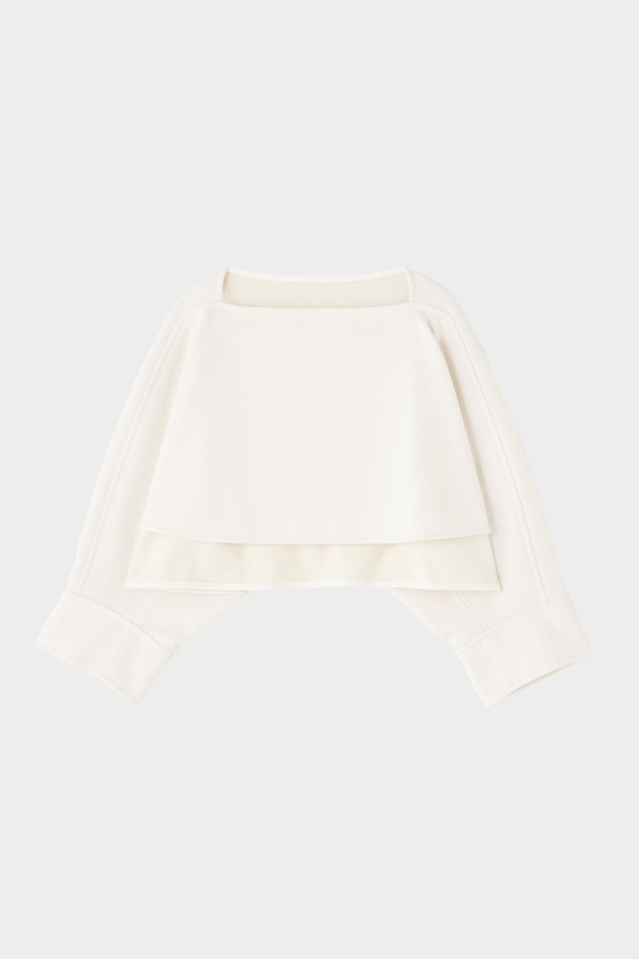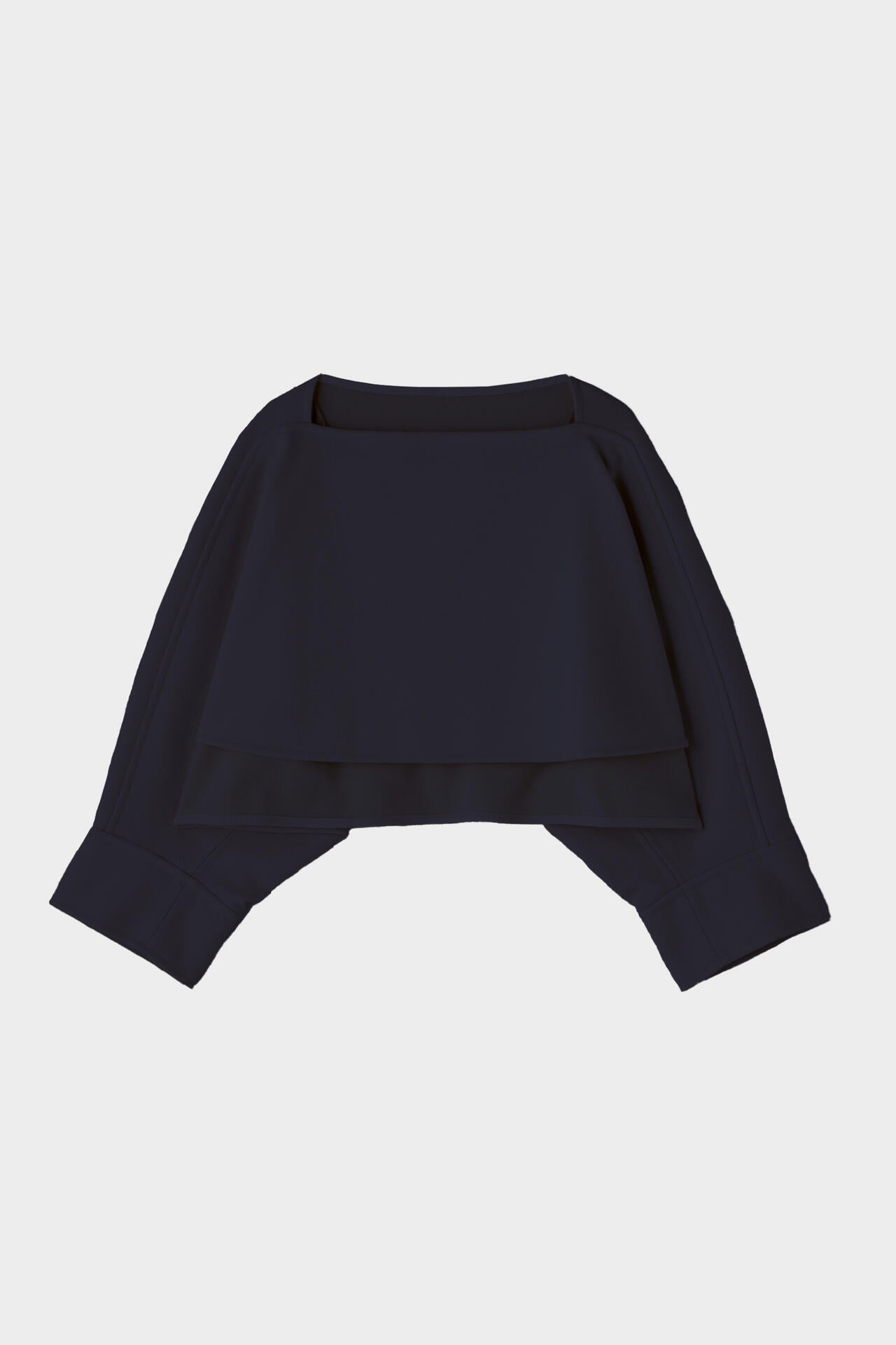 首を通さずに着用するとカーディガンとして羽織アイテムになる、2WAYトップです。