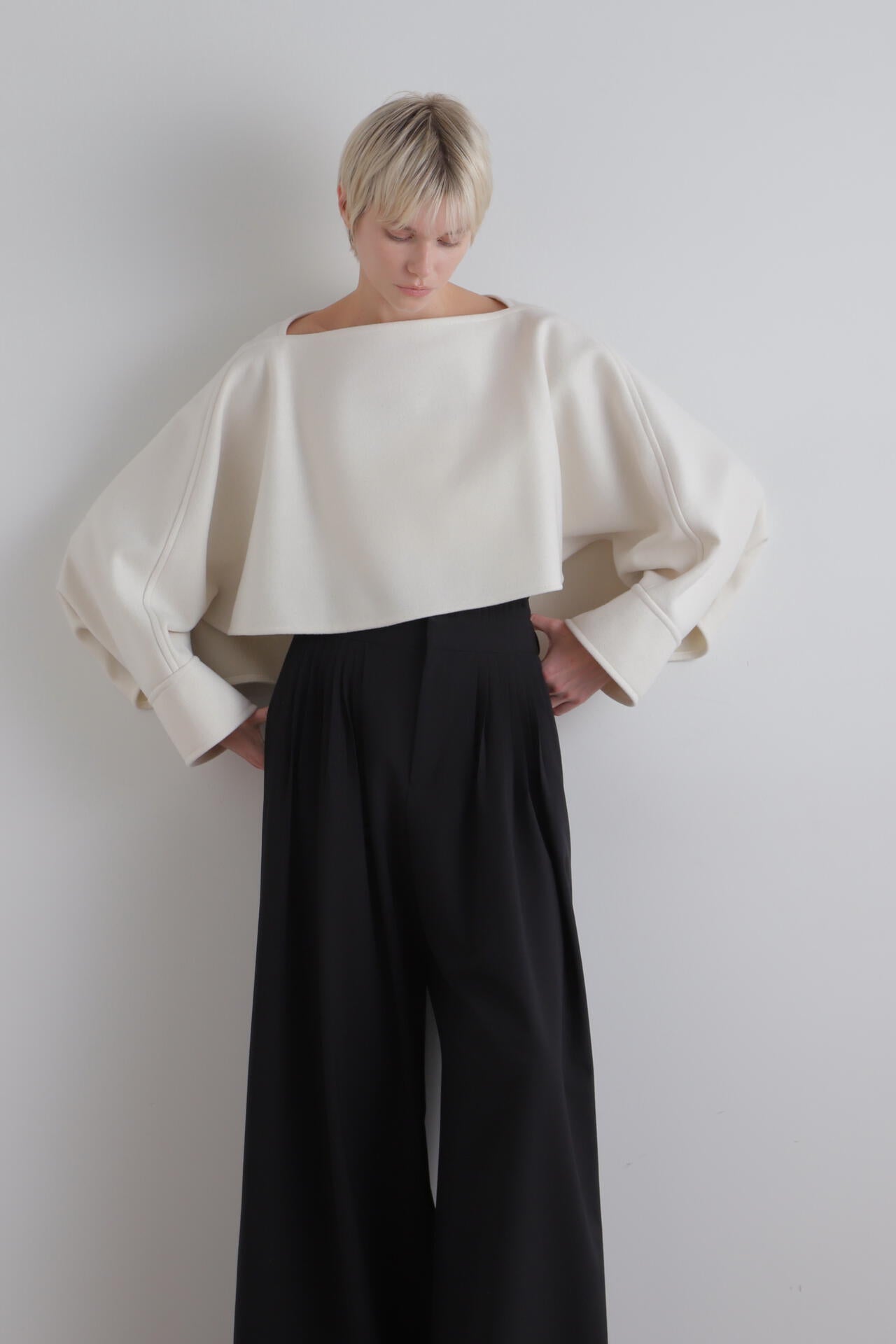 軽くあたたかみのあるジャージー素材で仕立てた、フォルム感たっぷりのプルオーバー。