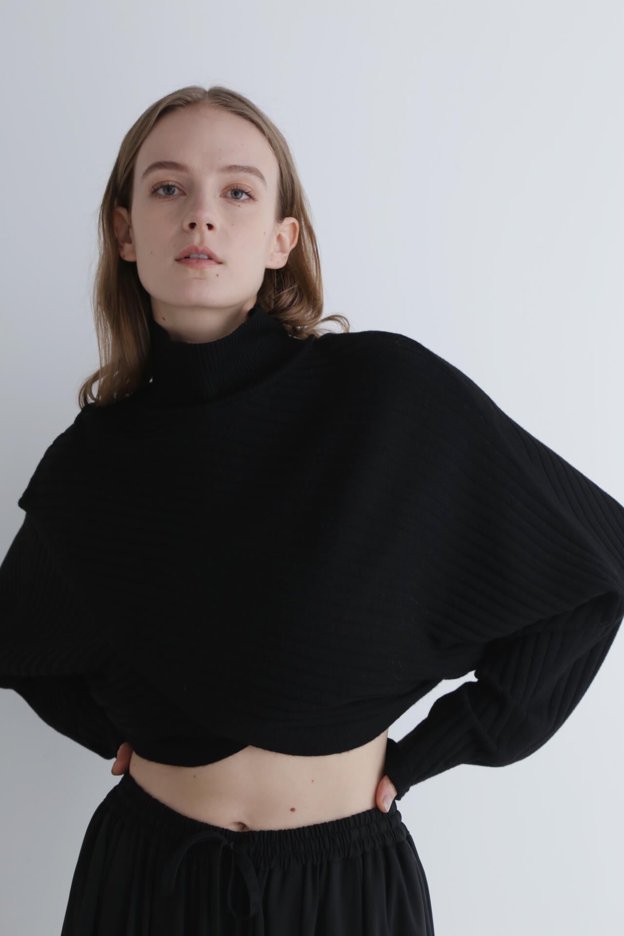 ショート丈ですがドルマンスリーブになっており脇をルーズにカバーしてくれるのが嬉しいポイントです。
