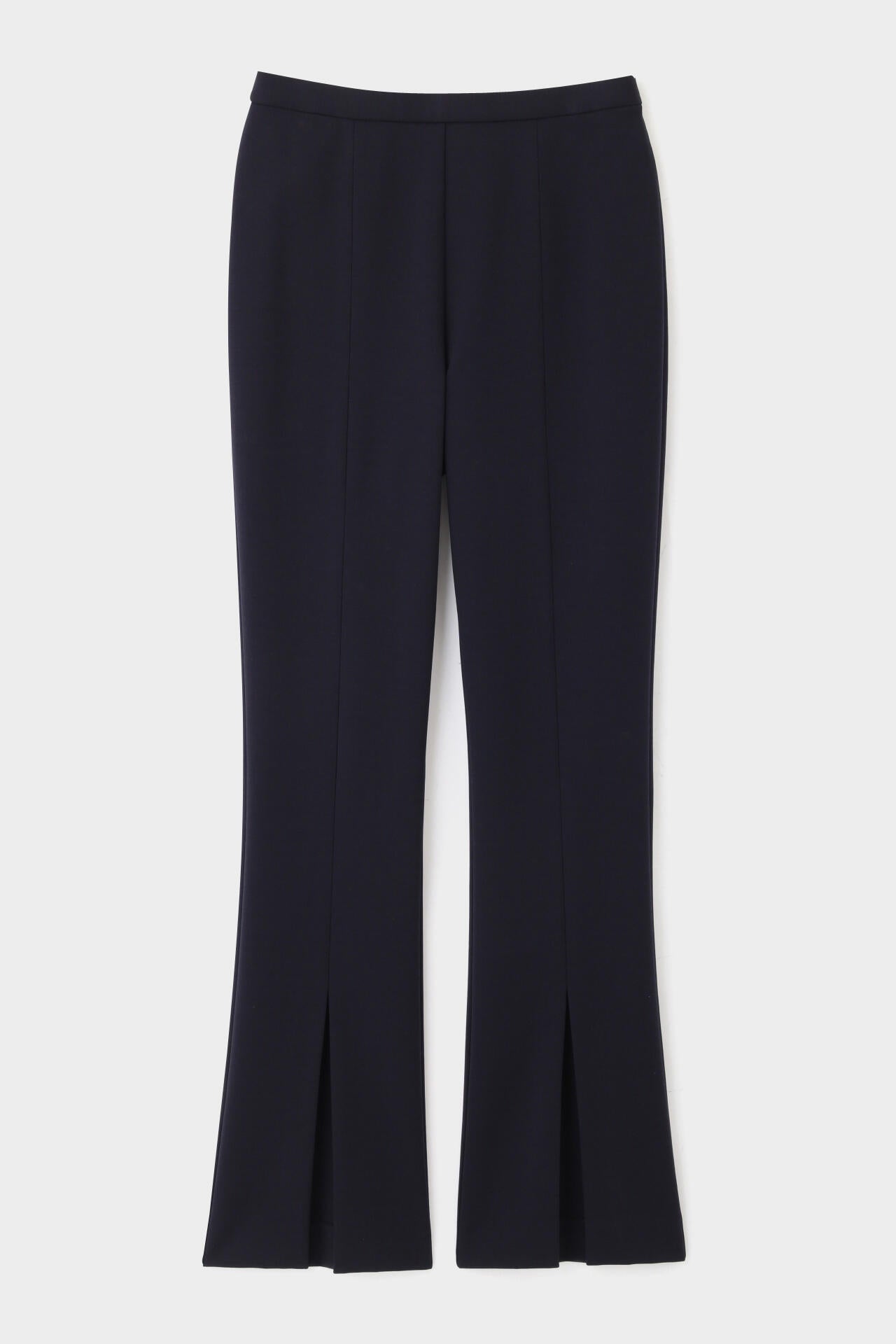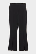 裾のスリットがアクセントの細身フレアパンツ。シルエットもすっきりと綺麗に見せてくれ、幅広いトップスとも好相性のパンツです。