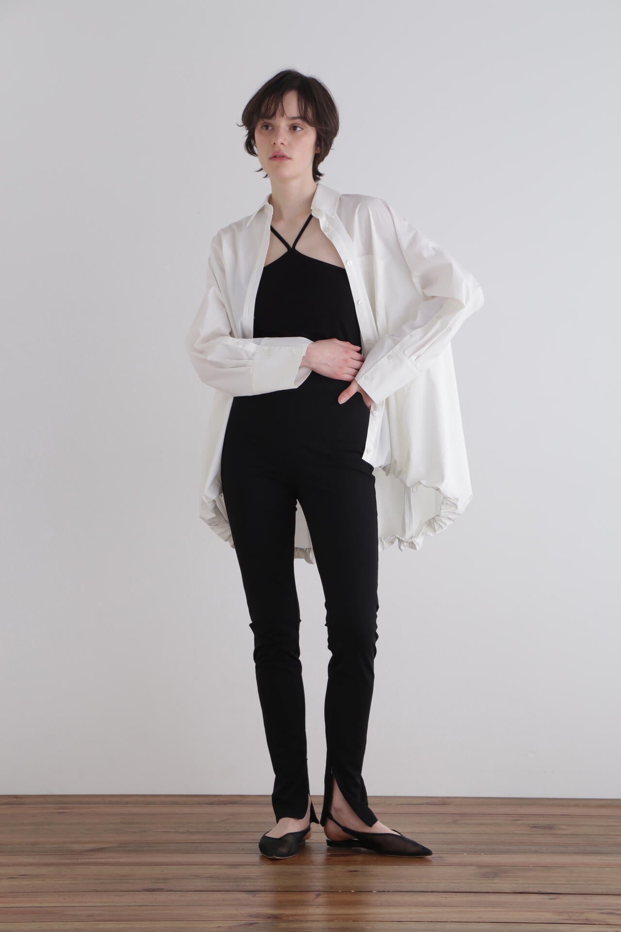 袖のケンボロを長くしてスリットにしたり、コクーンシルエットにしたりと一見ベーシックですが、手の込んだ一枚です。