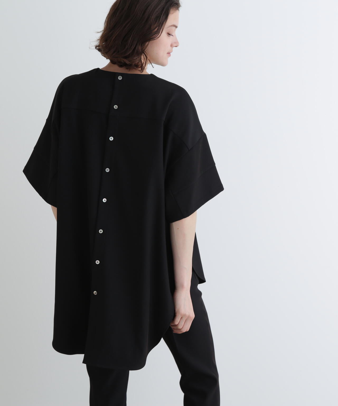 バックのボタン開きのデザインもポイントです。同素材で展開しているワイドパンツとのコーディネートがおすすめです。