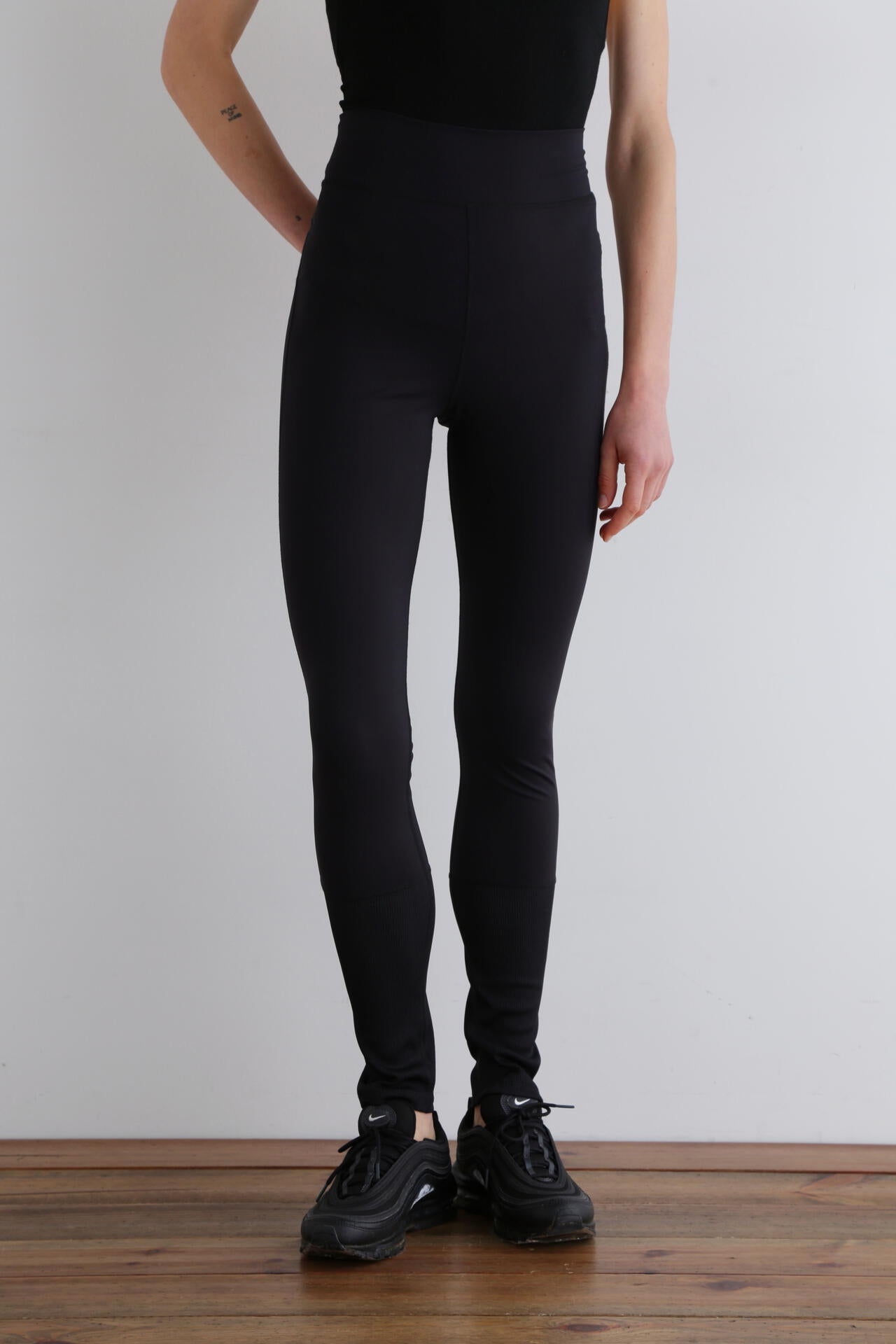 ひざ下がリブで切り替わりルーズなシルエットのデザインがLE PHILらしいレギンスです。
