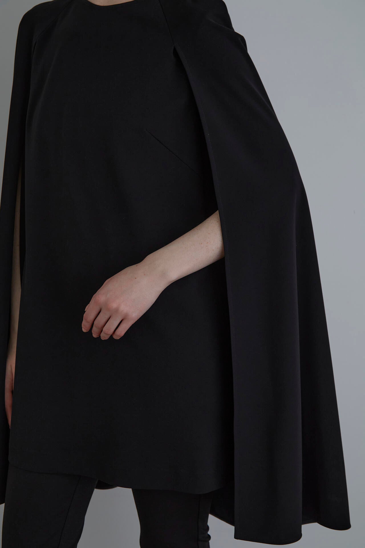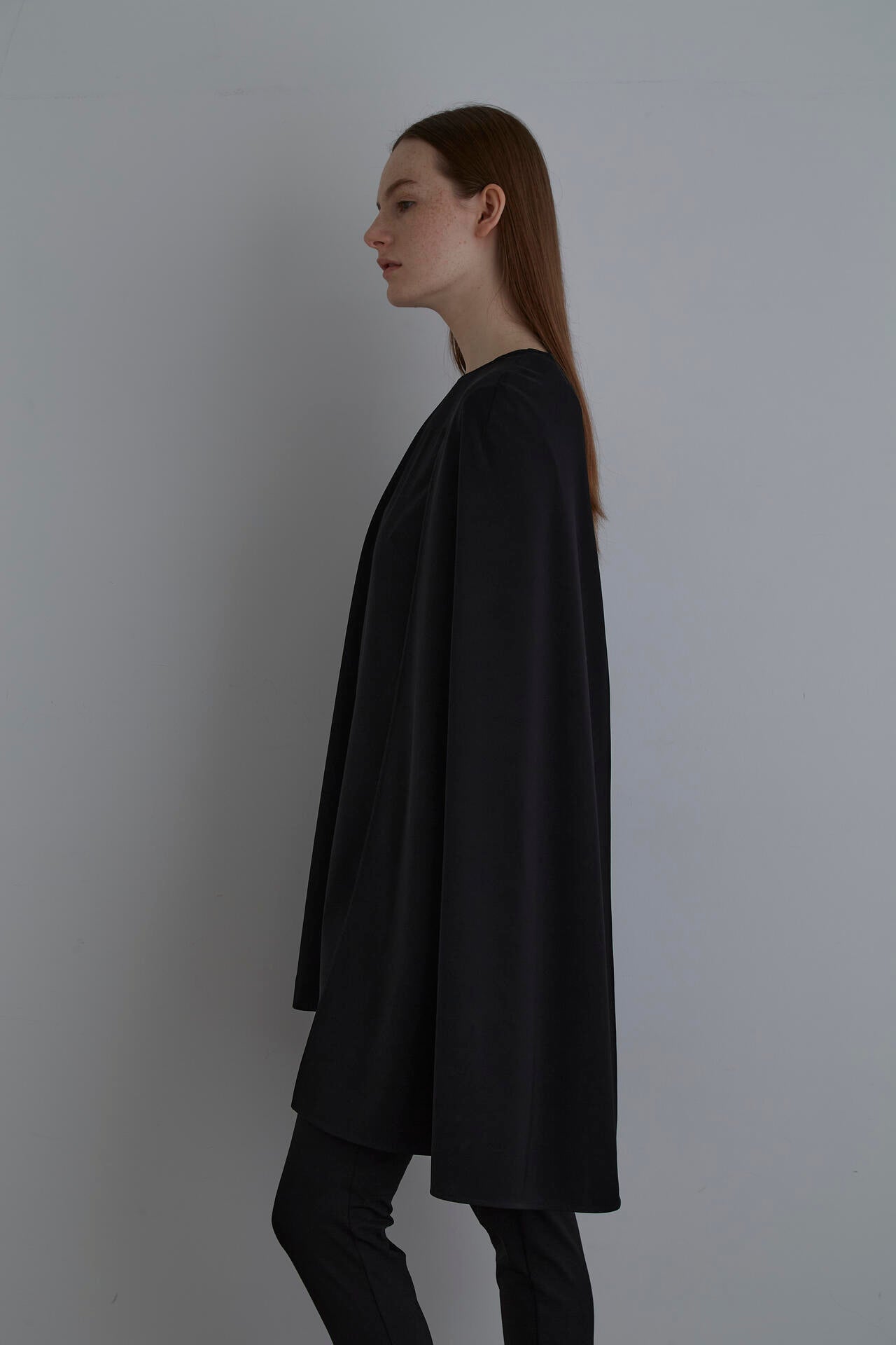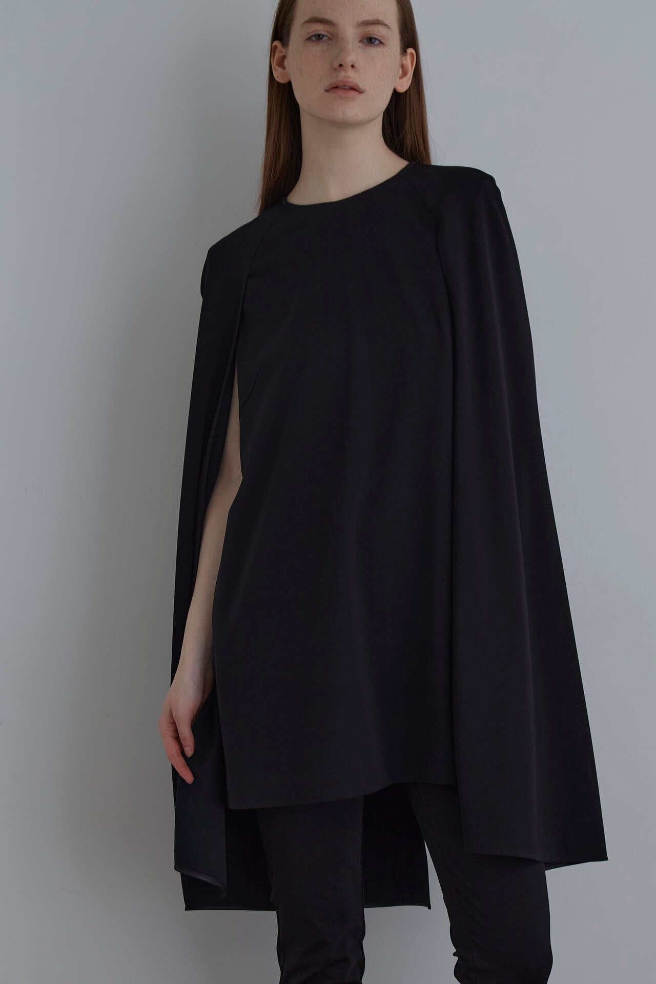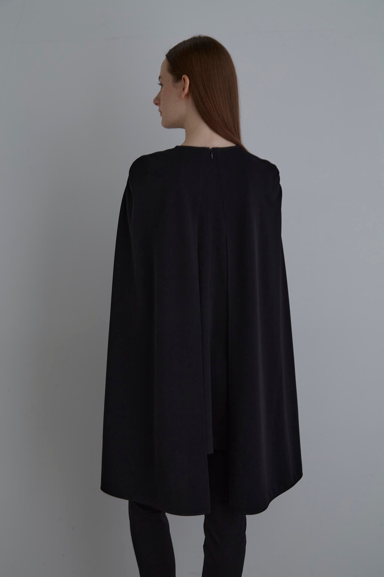 包まれるような優しい着心地を実現したクラシカルなケープドレス。